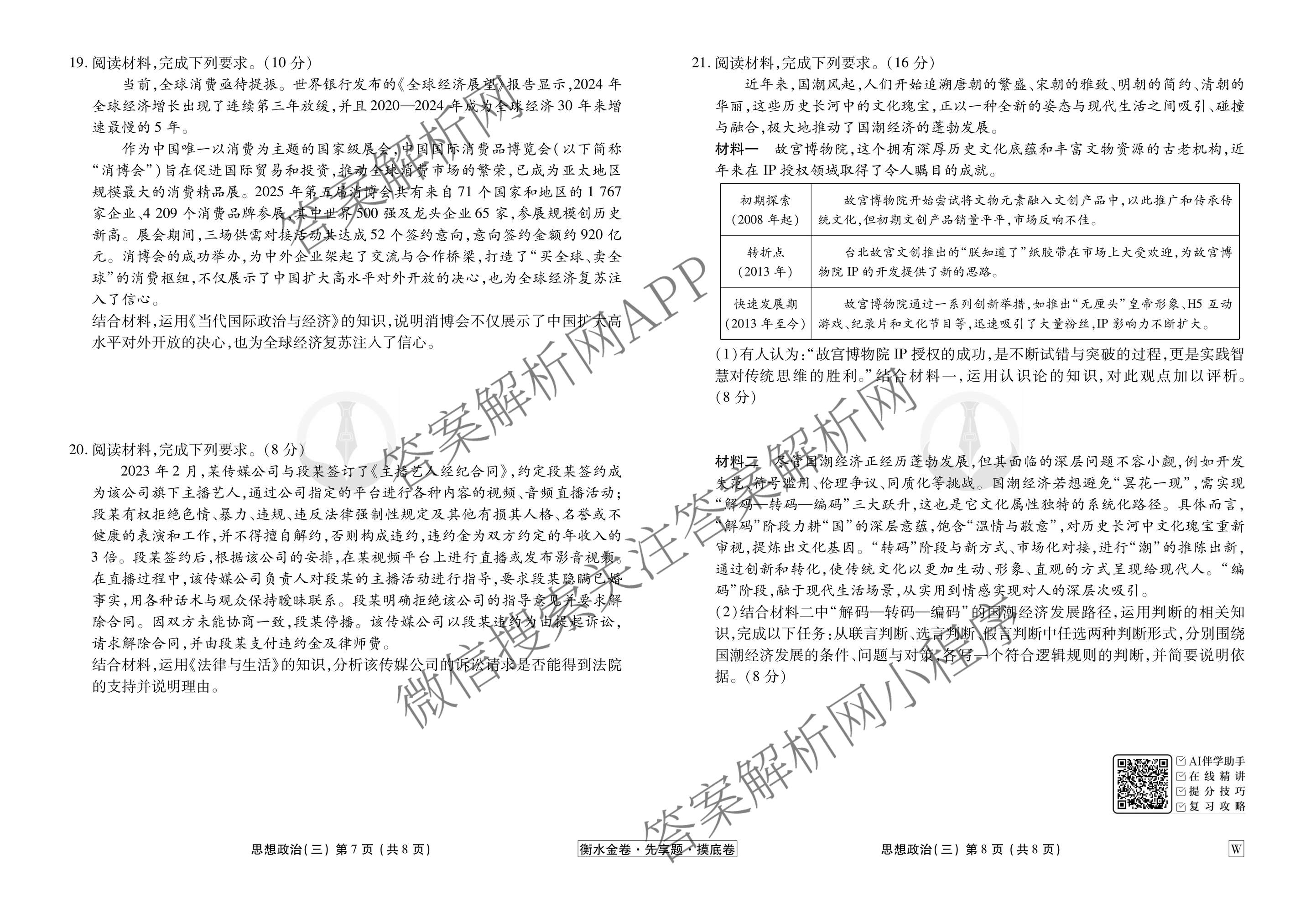 - [衡水金卷先享题]摸底卷2025-2026学年度[高三]一轮复习摸底测试卷(三)3政治(Q)试题