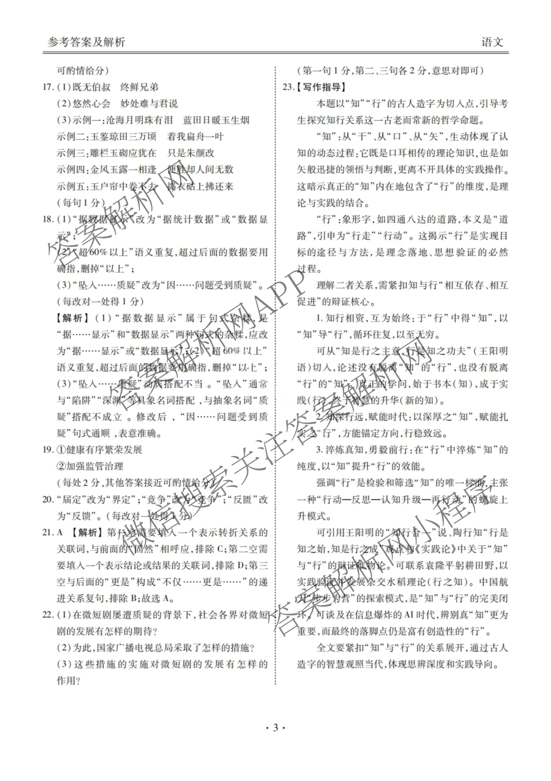 - (高三)衡水金卷·广东省2026届年级10月份联考语文答案