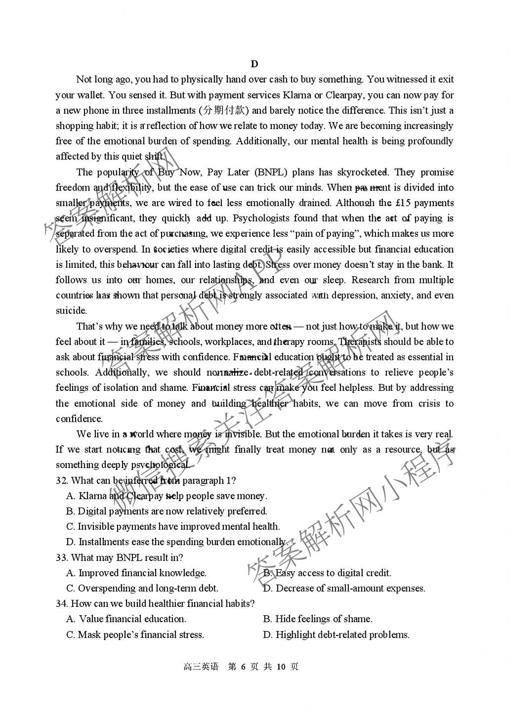 黑龙江省哈三中2025-2026学年度上学期高三期中考试英语试题,目前衡水金卷先享题答案网已经汇总了黑龙江省哈三中2025-2026学年度上学期高三期中考试英语试题的各科答案和试卷,获取更多地方模拟答案解析,请在关注本站。