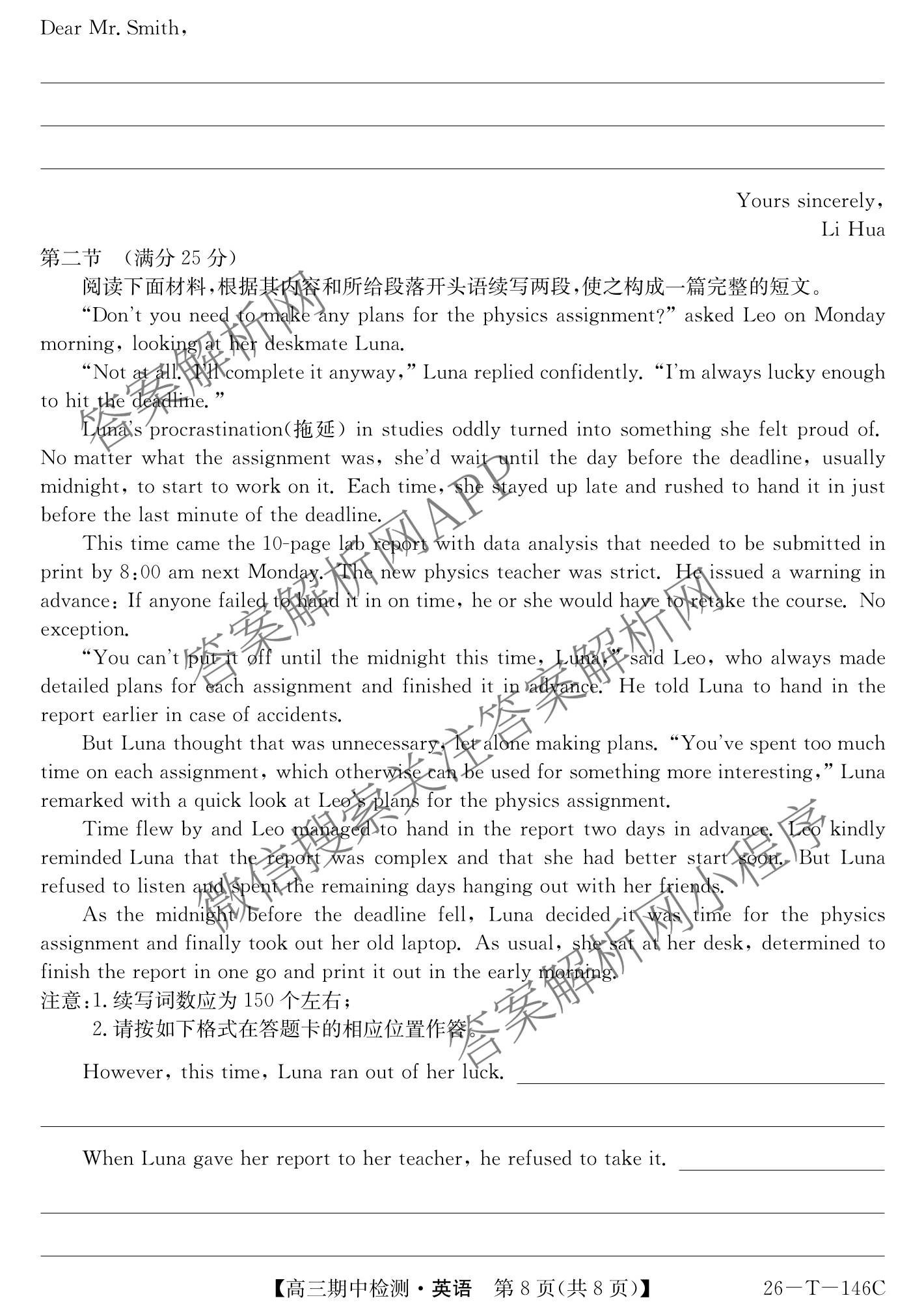青海省大通县朔山中学2025-2026学年第一学期高三期中检测(26-T-146C)英语试题,目前衡水金卷先享题答案网已经汇总了青海省大通县朔山中学2025-2026学年第一学期高三期中检测(26-T-146C)英语试题的各科答案和试卷,获取更多地方模拟答案解析,请在关注本站。
