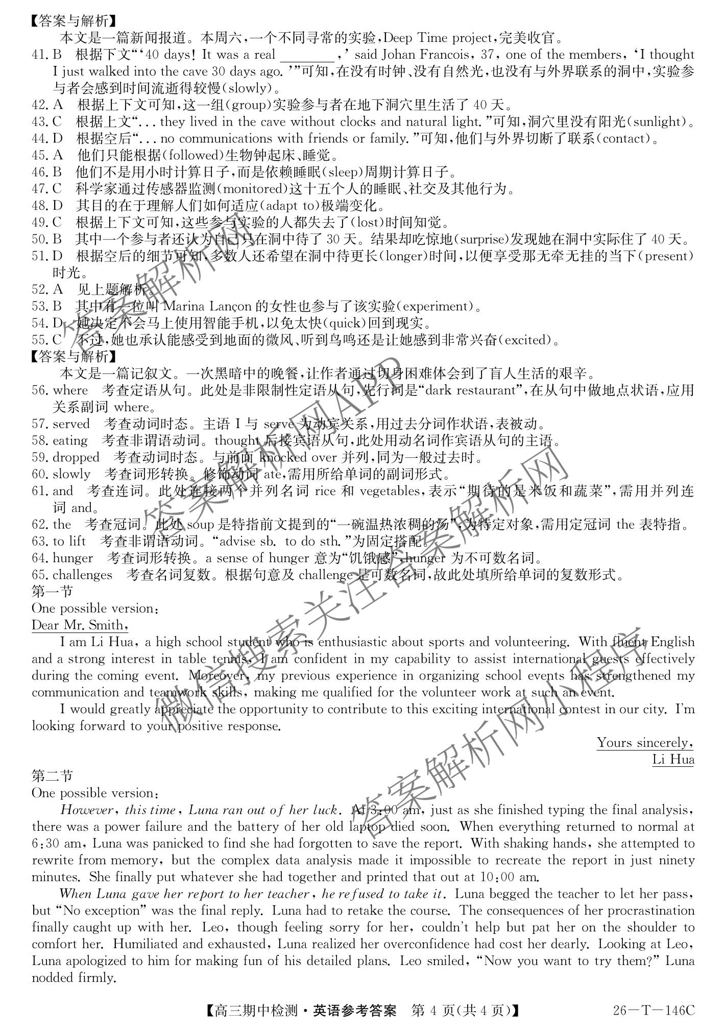 - 青海省大通县朔山中学2025-2026学年第一学期高三期中检测(26-T-146C)英语答案