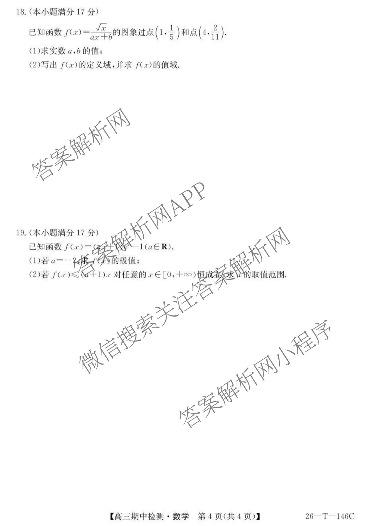 青海省大通县朔山中学2025-2026学年第一学期高三期中检测(26-T-146C)数学试题,目前衡水金卷先享题答案网已经汇总了青海省大通县朔山中学2025-2026学年第一学期高三期中检测(26-T-146C)数学试题的各科答案和试卷,获取更多地方模拟答案解析,请在关注本站。