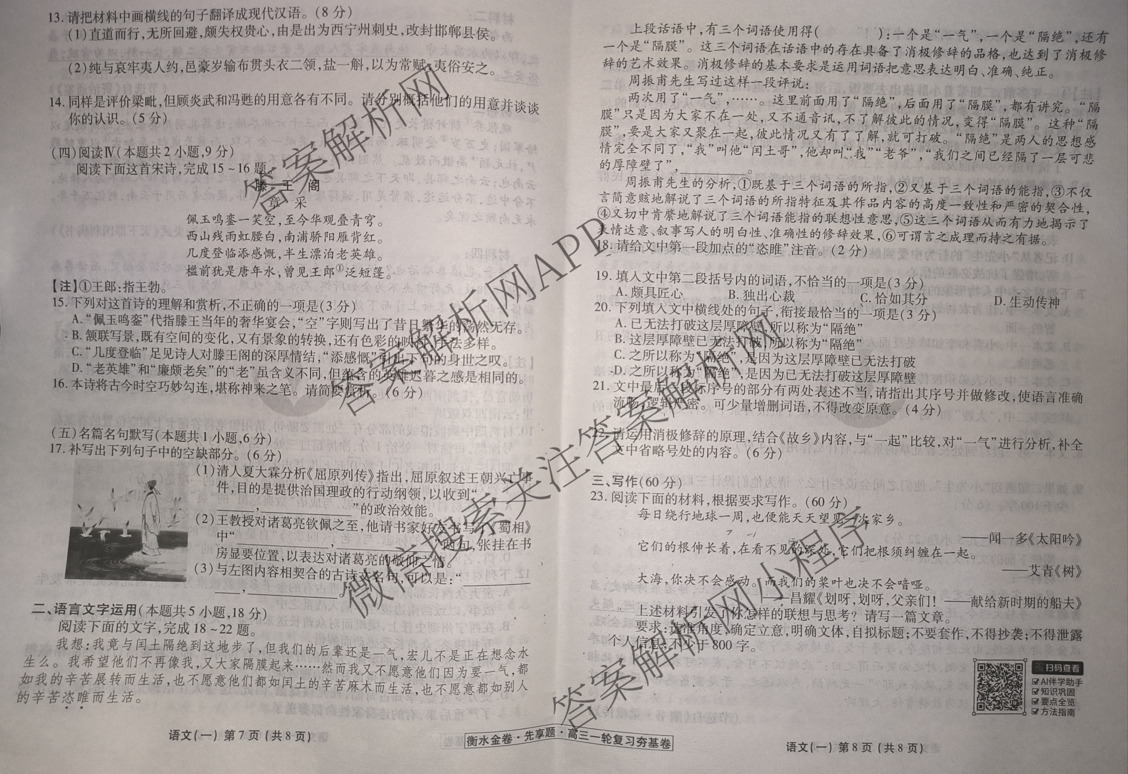 衡水金卷先享题·夯基卷 2026年普通高等学校招生全国统一考试模拟 语文(一)1试题,目前衡水金卷先享题答案网已经汇总了衡水金卷先享题·夯基卷 2026年普通高等学校招生全国统一考试模拟 语文(一)1试题的各科答案和试卷,获取更多衡水金卷先享题答案解析,请在关注本站。