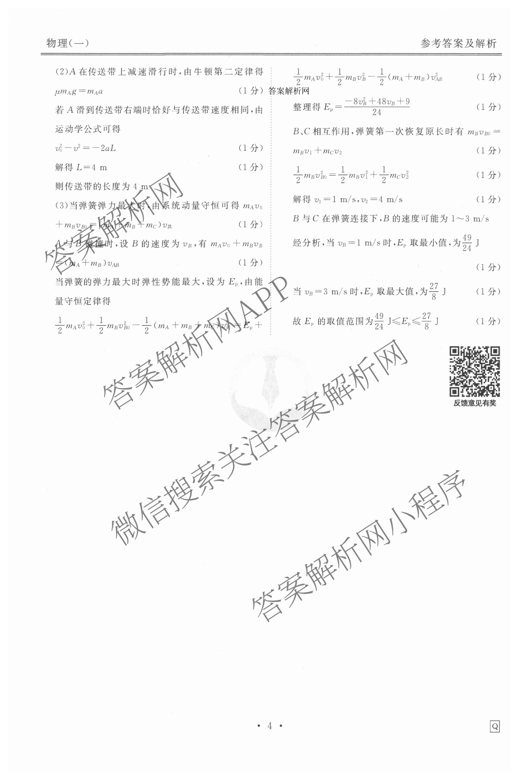 - 高三(衡水金卷先享题)夯基卷 2026年普通高中学业水平选择性考试模拟 物理(Q)(一)1答案