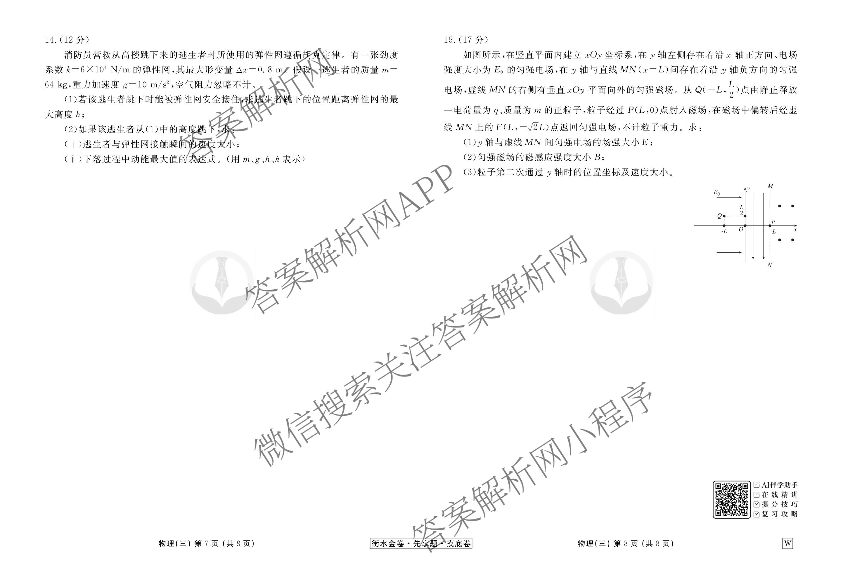 - [衡水金卷先享题]摸底卷2025-2026学年度(高三)一轮复习摸底测试卷(三)3物理(Y)答案