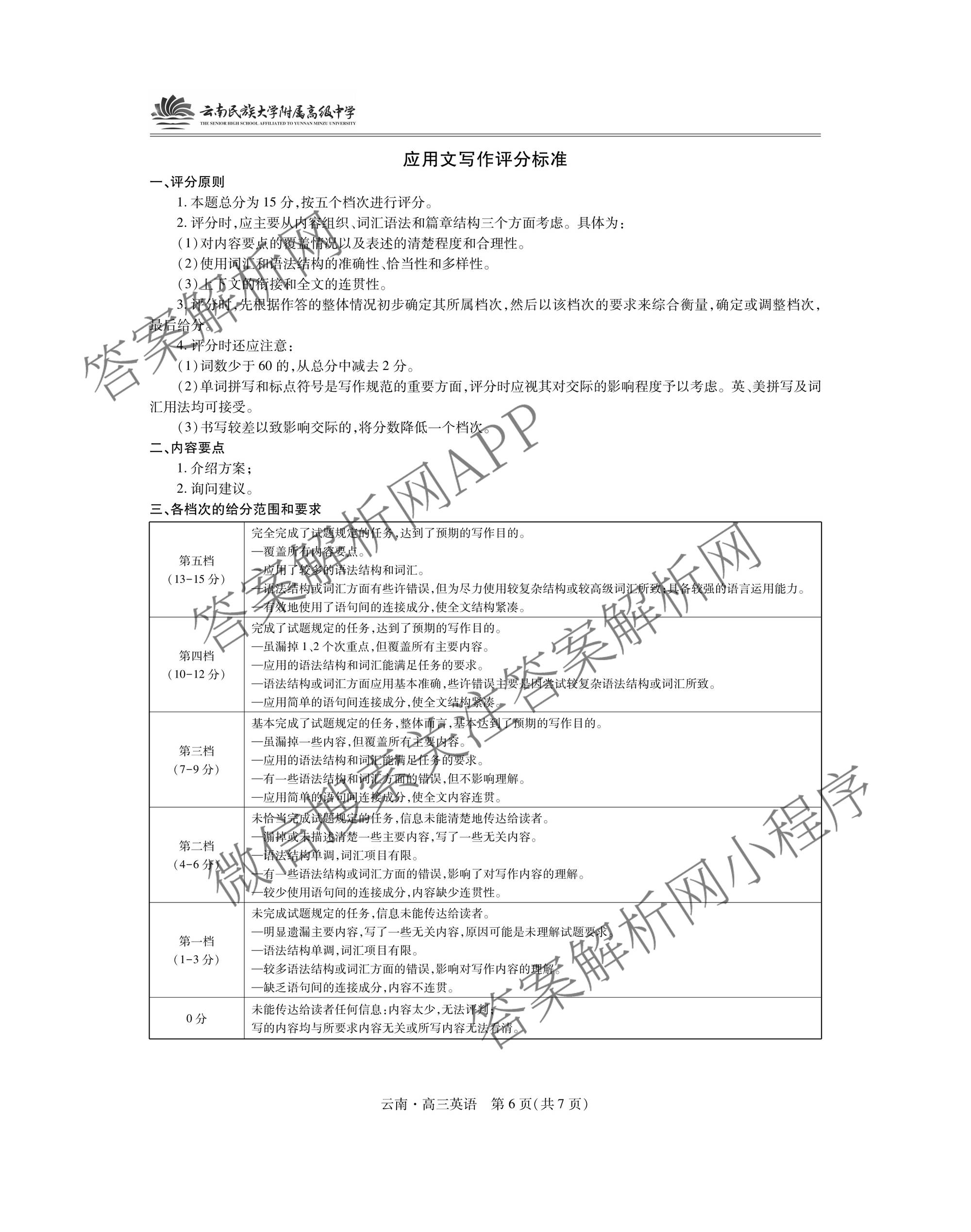 - 2026届[高三]云南民族大学附属高级中学联考卷(三)英语答案