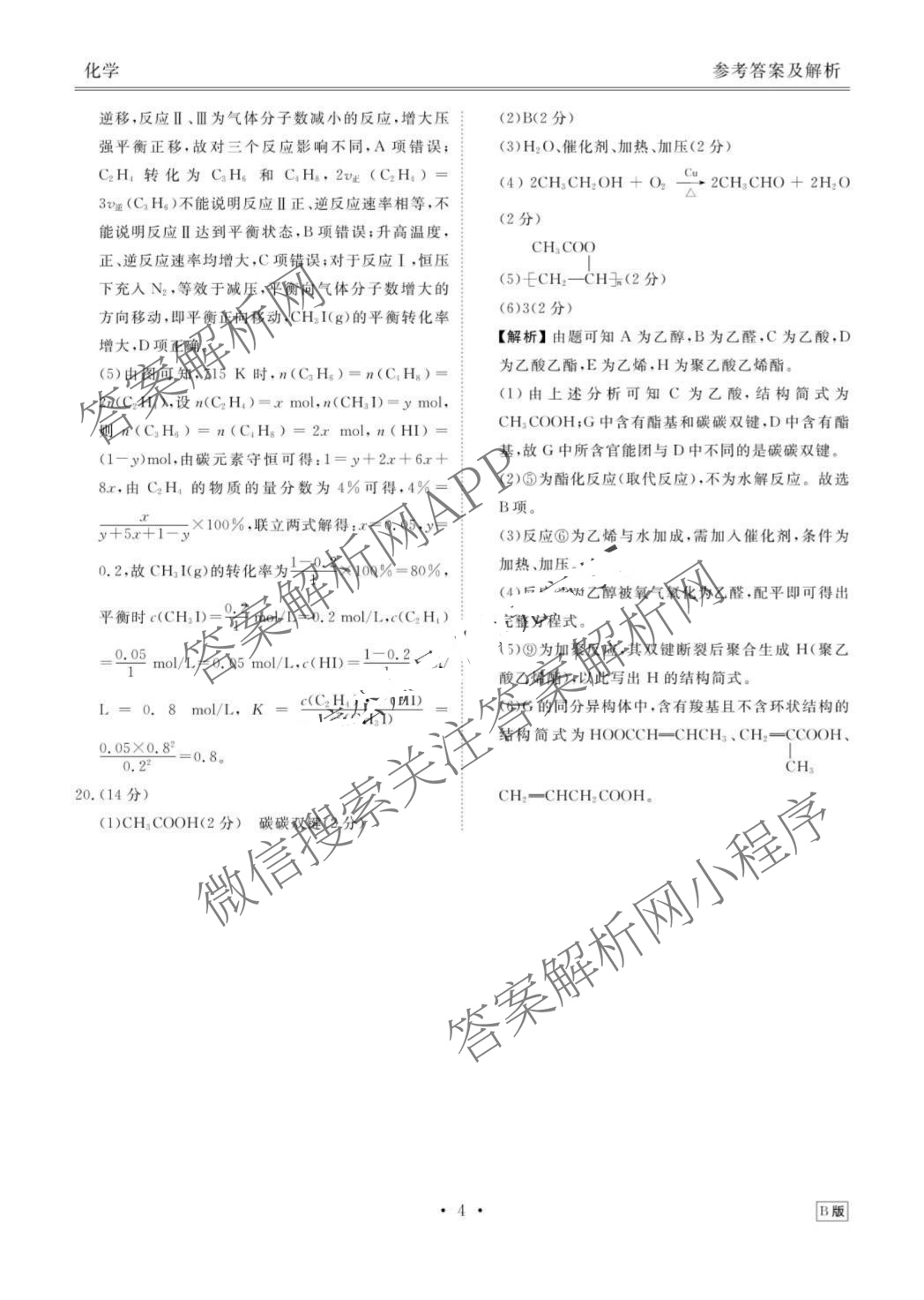 - 衡水金卷2025-2026学年度(高二)年级11月份联考化学(B版)答案