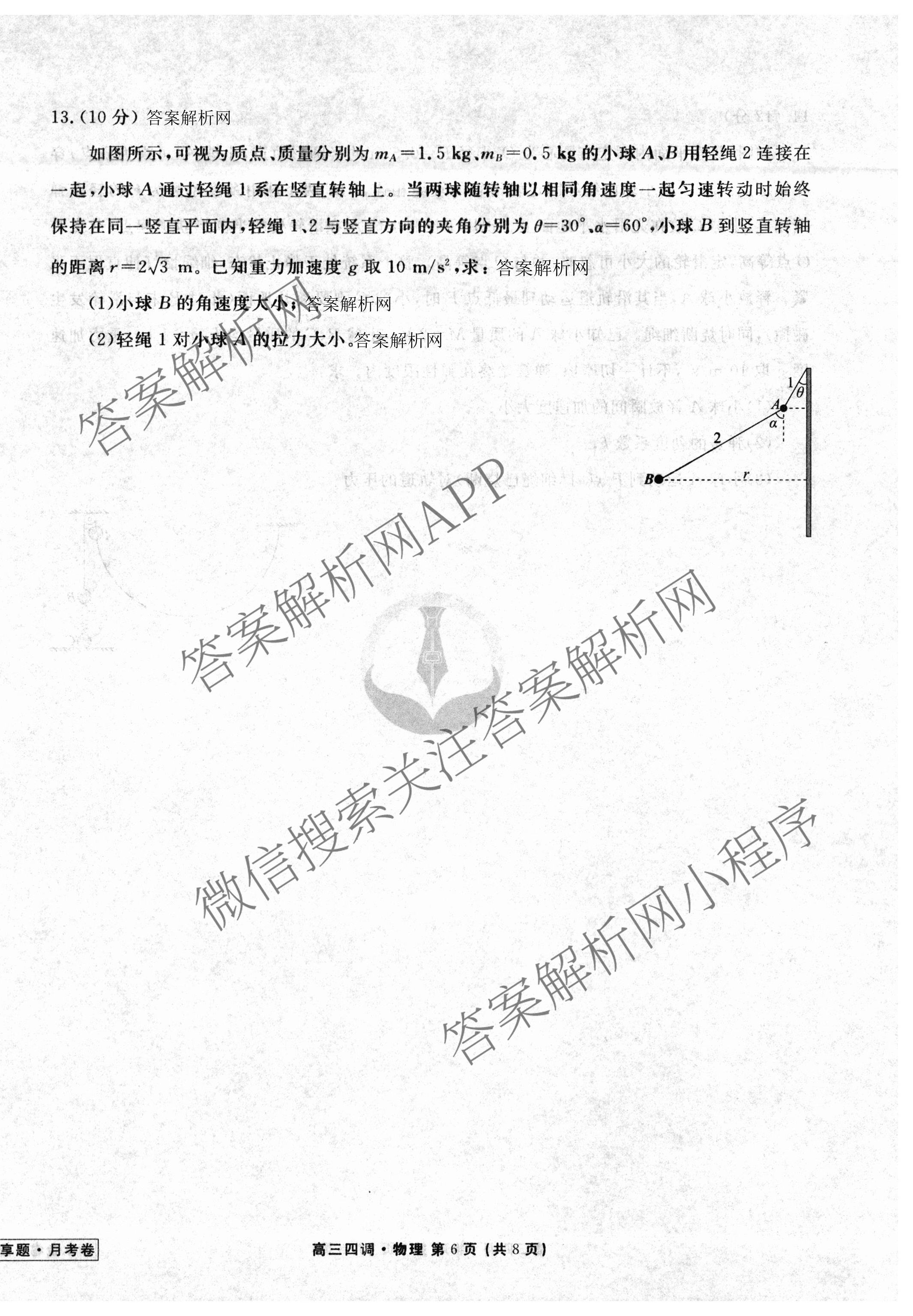 衡水金卷先享题·月考卷·2025-2026学年度上学期高三年级四调考试物理试题,目前衡水金卷先享题答案网已经汇总了衡水金卷先享题·月考卷·2025-2026学年度上学期高三年级四调考试物理试题的各科答案和试卷,获取更多衡水金卷先享题答案解析,请在关注本站。