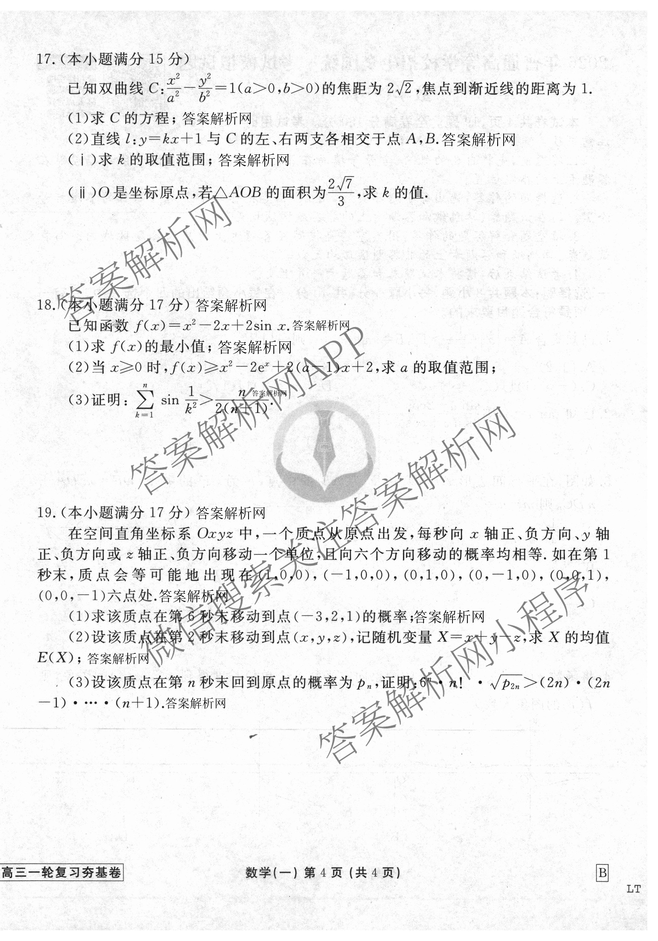 衡水金卷先享题·夯基卷 2026年普通高等学校招生全国统一考试模拟试题(一)1数学(B)试题,目前衡水金卷先享题答案网已经汇总了衡水金卷先享题·夯基卷 2026年普通高等学校招生全国统一考试模拟试题(一)1数学(B)试题的各科答案和试卷,获取更多衡水金卷先享题答案解析,请在关注本站。