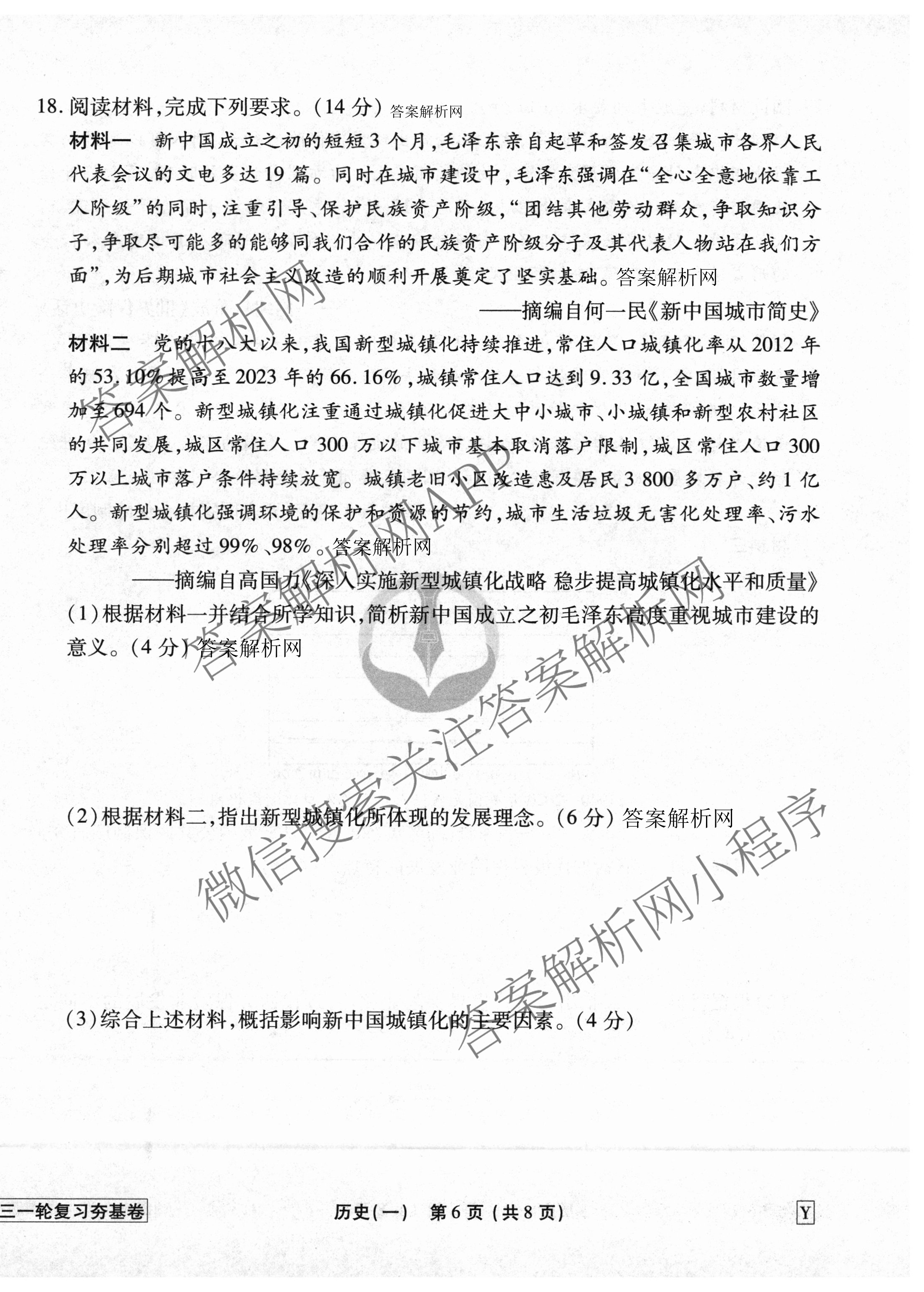 - [高三]衡水金卷先享题·夯基卷 2026年普通高中学业水平选择性考试模拟试题(一)1历史(Y)试题