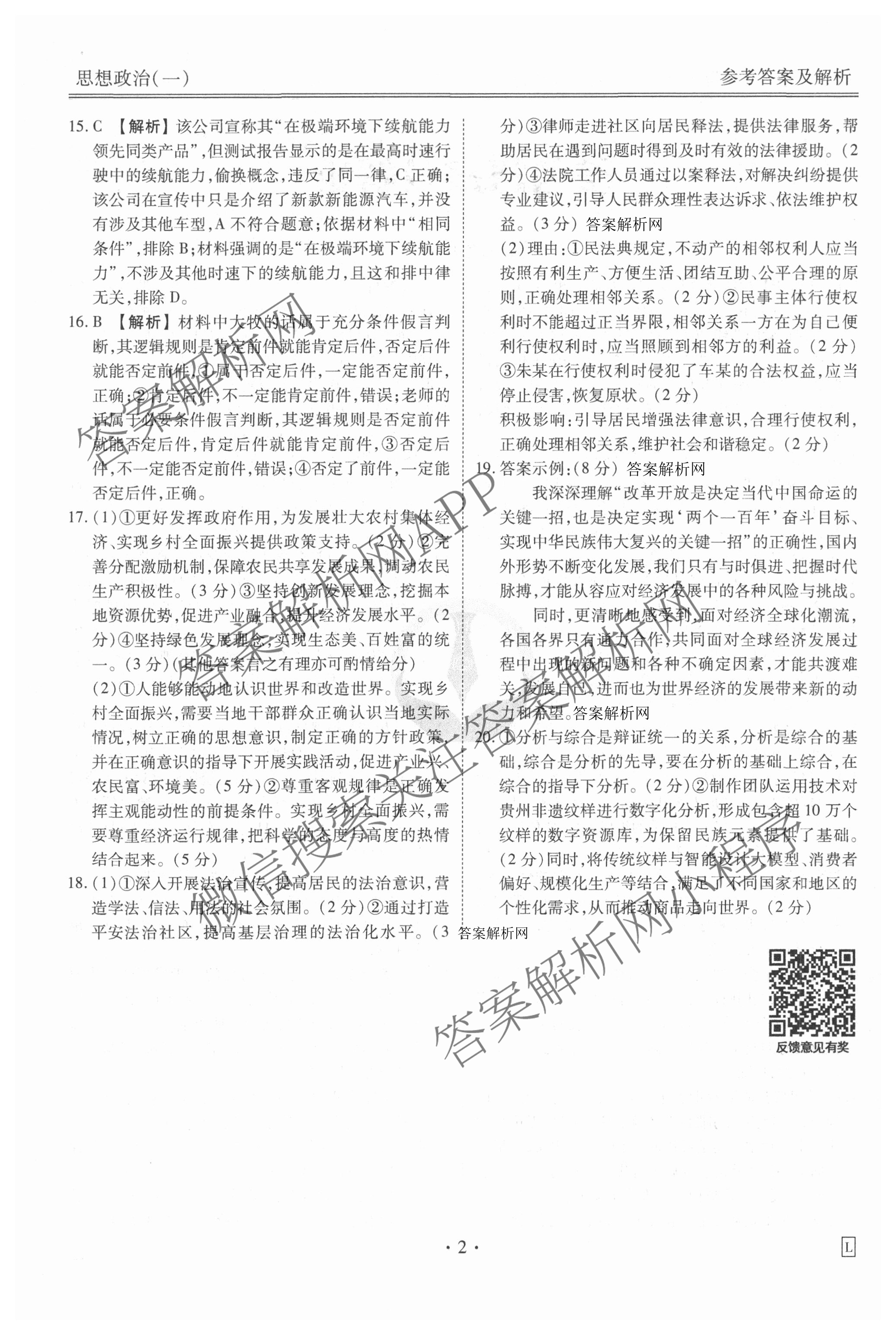 - [高三]衡水金卷先享题·夯基卷 2026年普通高中学业水平选择性考试模拟试题(一)1政治(MH)答案