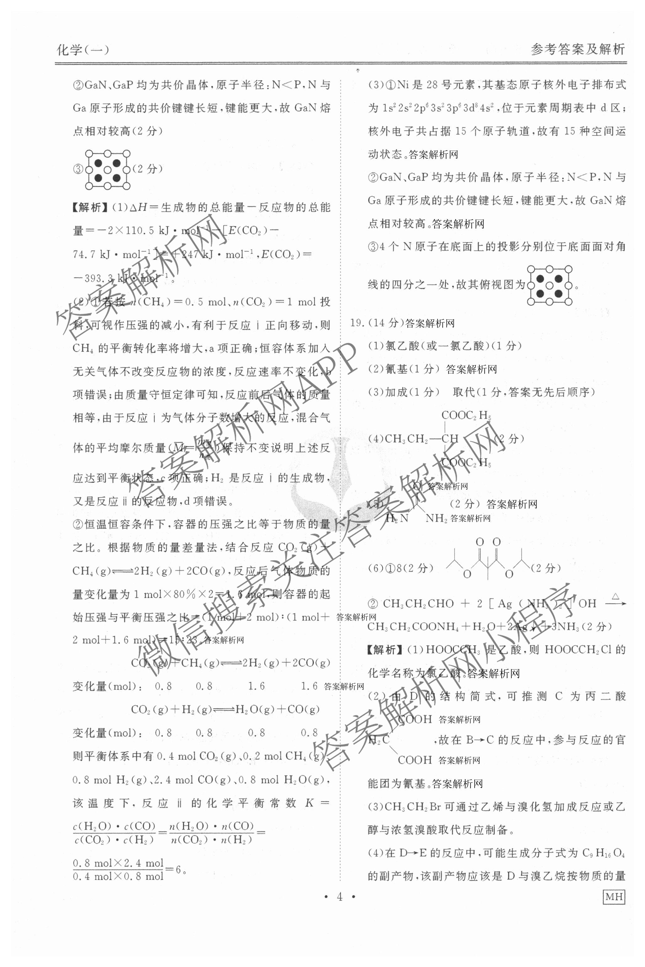 - (高三)[衡水金卷先享题]·夯基卷 2026年普通高中学业水平选择性考试模拟试题(一)1化学(MH)答案