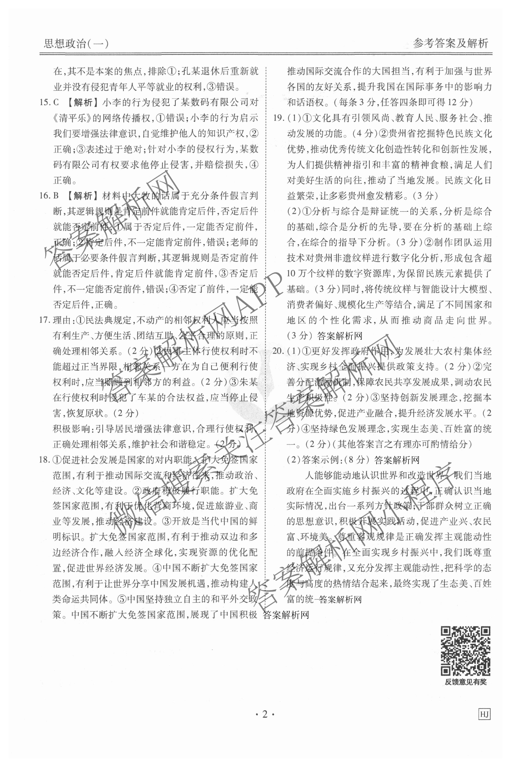 - [高三]衡水金卷先享题·夯基卷 2026年普通高中学业水平选择性考试模拟试题(一)1政治(MH)答案