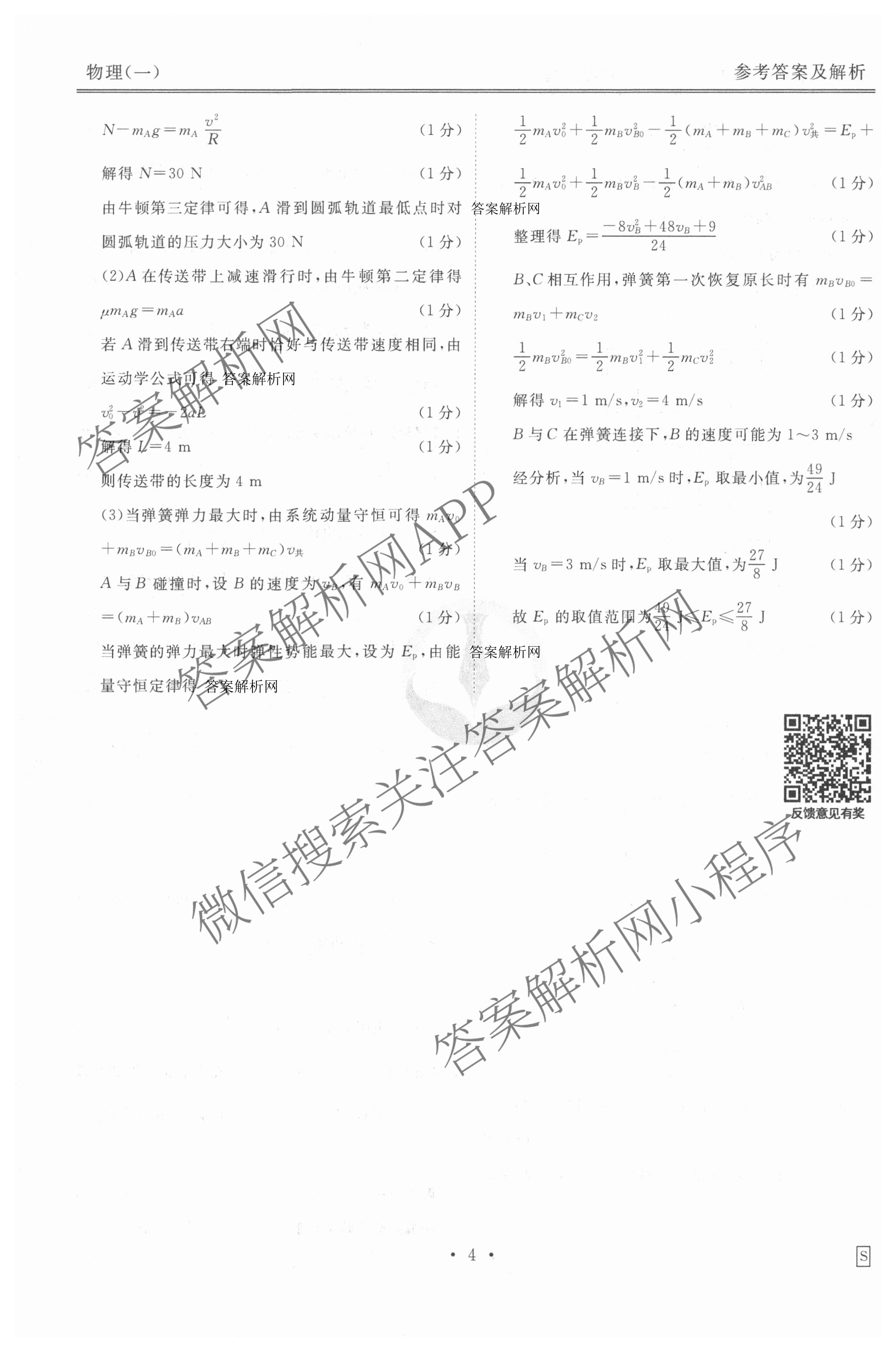 - [高三][衡水金卷先享题]夯基卷 2026年普通高中学业水平选择性考试模拟试题(一)1物理(S)答案