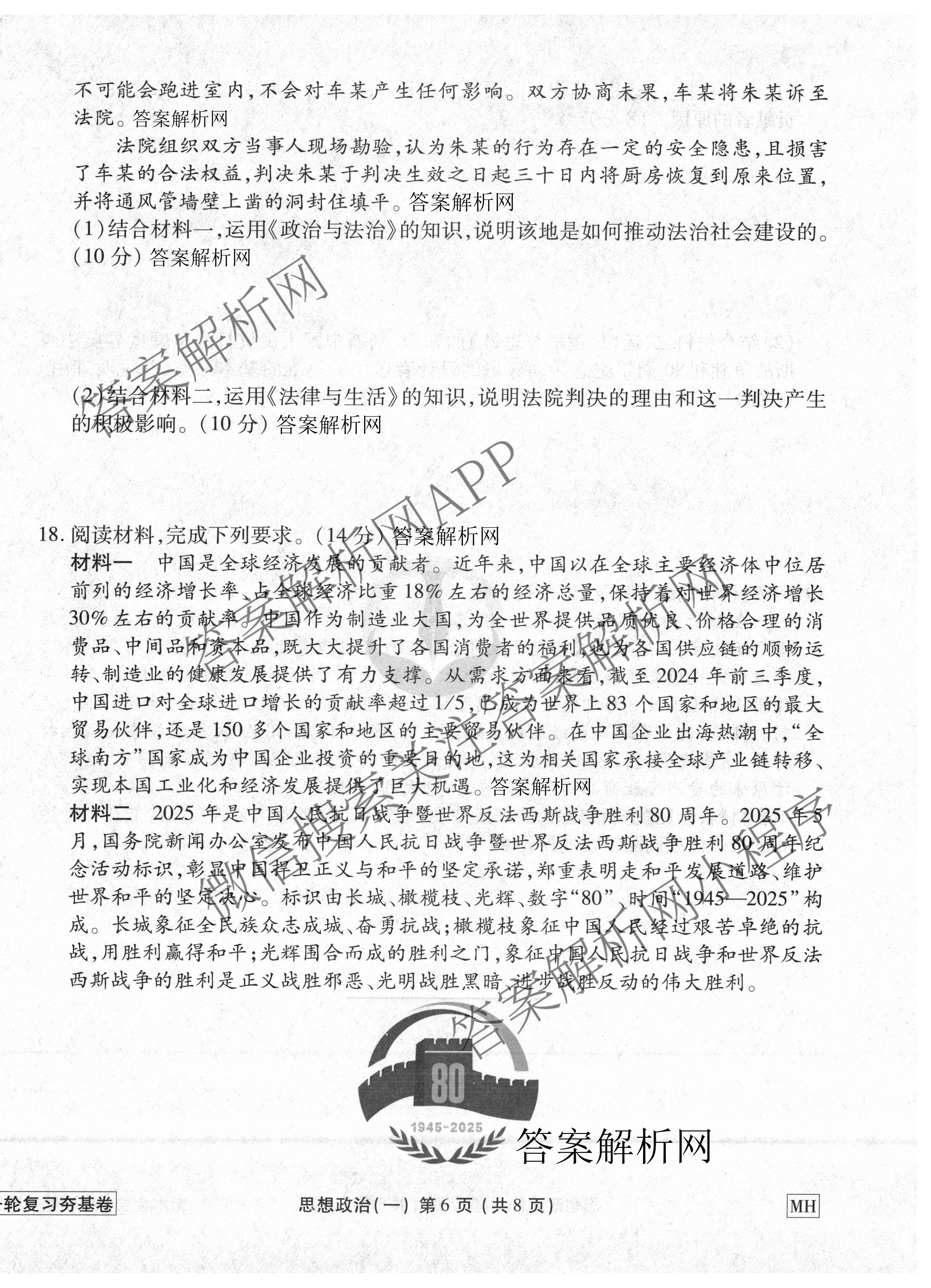 衡水金卷先享题·夯基卷 2026年普通高中学业水平选择性考试模拟试题(一)1政治(MH)试题,目前衡水金卷先享题答案网已经汇总了衡水金卷先享题·夯基卷 2026年普通高中学业水平选择性考试模拟试题(一)1政治(MH)试题的各科答案和试卷,获取更多衡水金卷先享题答案解析,请在关注本站。