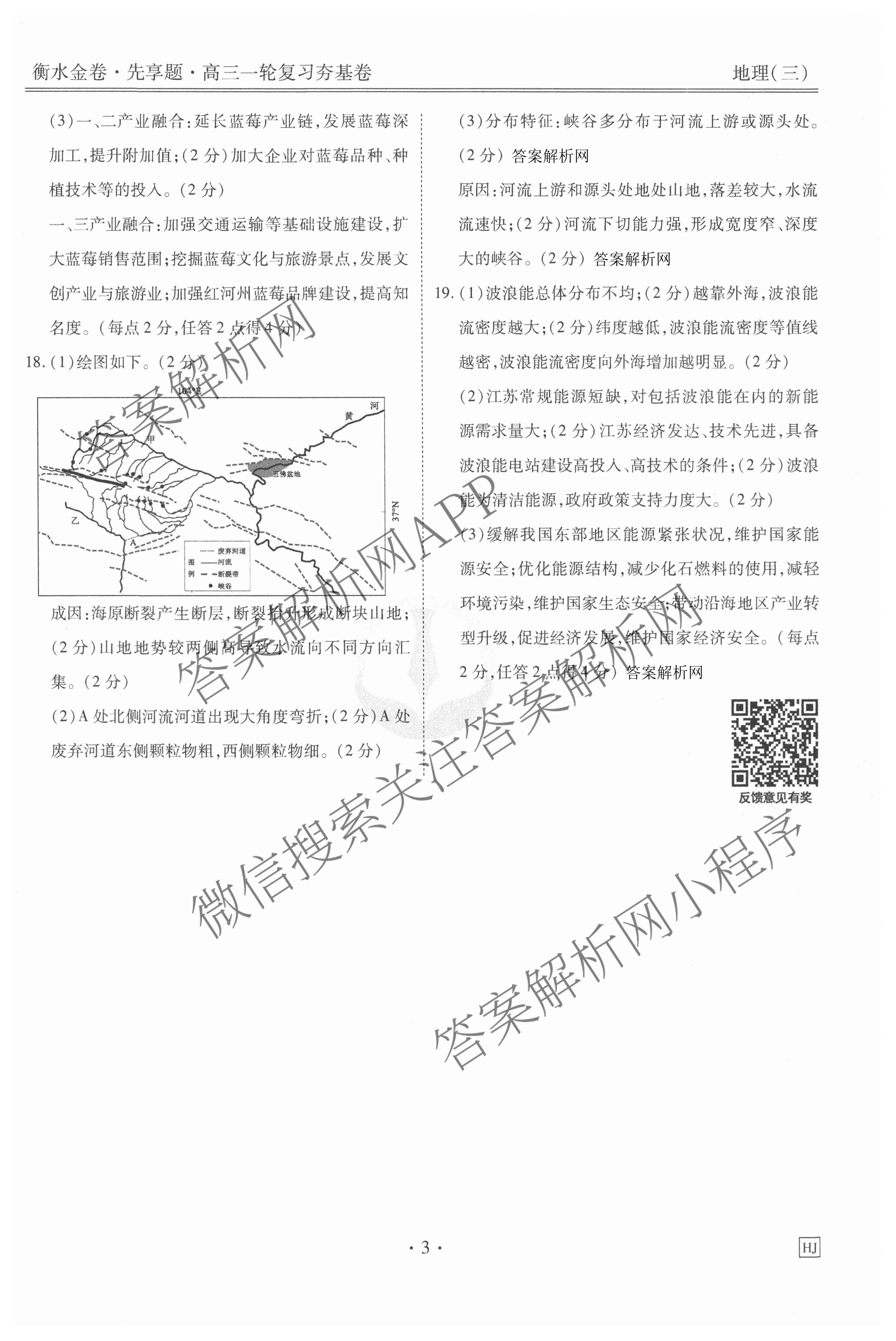 - [衡水金卷先享题]夯基卷 2026年普通高中学业水平选择性考试模拟 地理(三)3答案