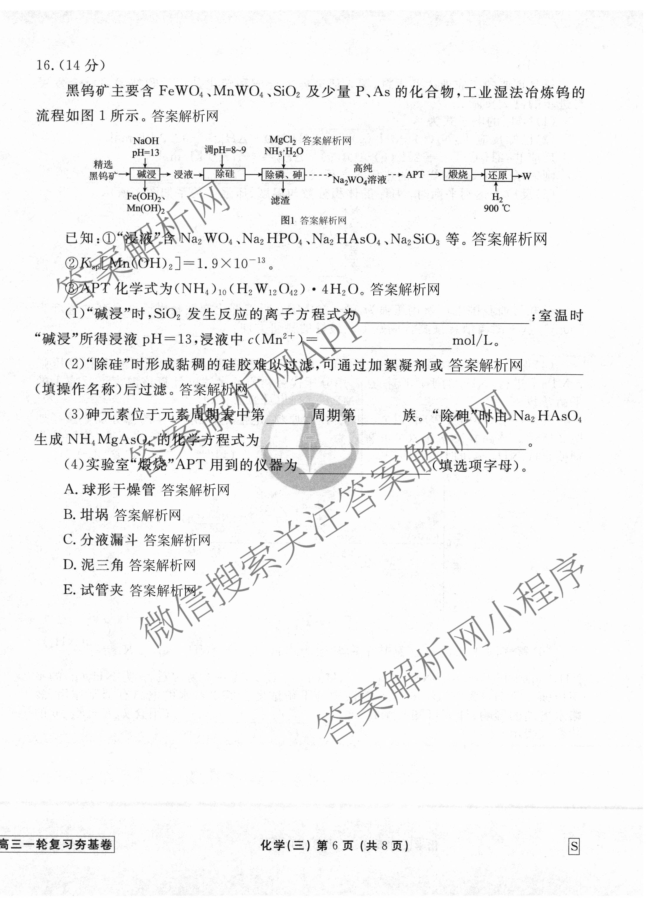 衡水金卷先享题·夯基卷 2026年普通高中学业水平选择性考试模拟试题(三)3化学(S)试题,目前衡水金卷先享题答案网已经汇总了衡水金卷先享题·夯基卷 2026年普通高中学业水平选择性考试模拟试题(三)3化学(S)试题的各科答案和试卷,获取更多衡水金卷先享题答案解析,请在关注本站。
