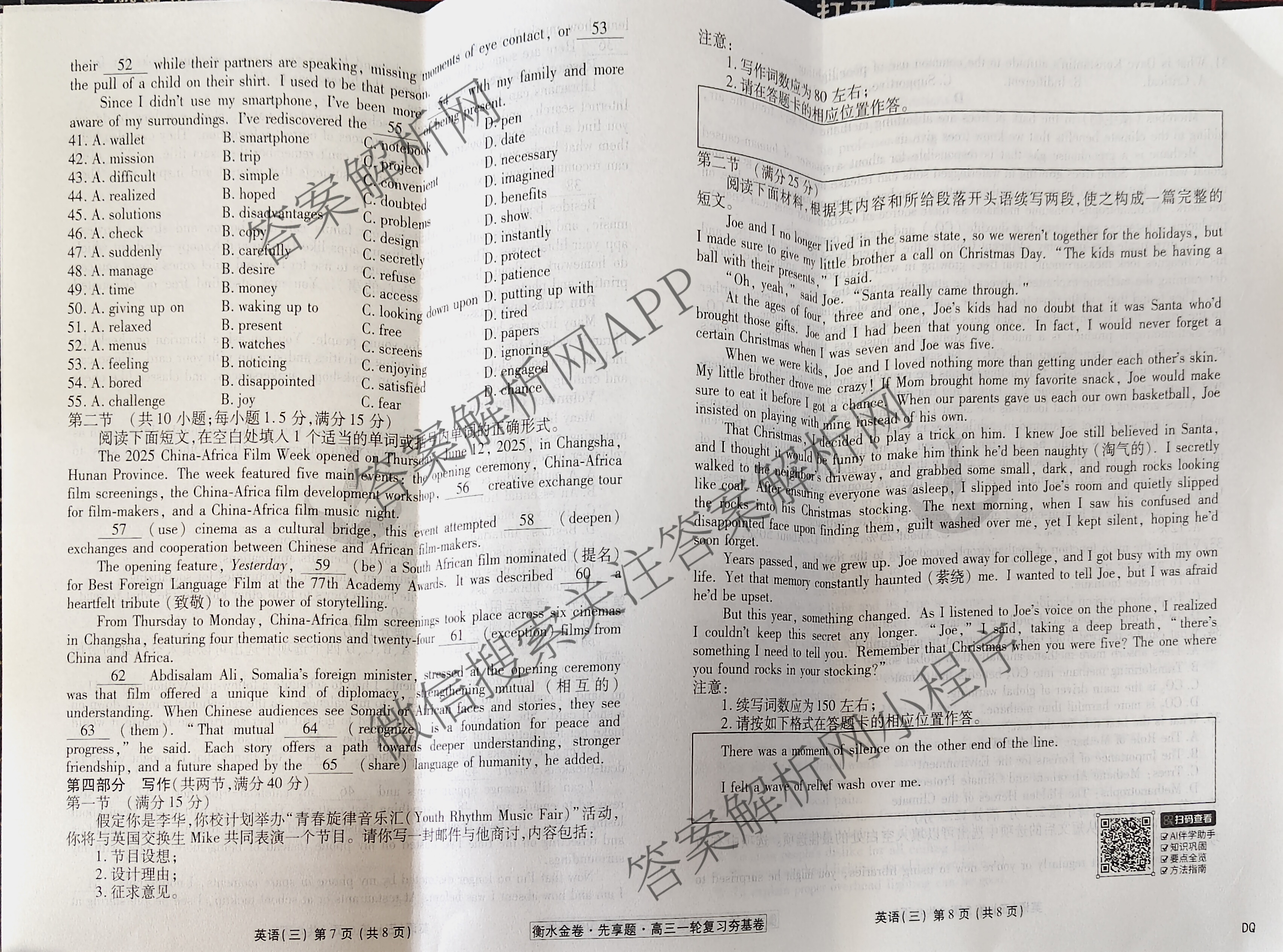衡水金卷先享题·夯基卷 2026年普通高等学校招生全国统一考试模拟 英语(三)3试题,目前衡水金卷先享题答案网已经汇总了衡水金卷先享题·夯基卷 2026年普通高等学校招生全国统一考试模拟 英语(三)3试题的各科答案和试卷,获取更多衡水金卷先享题答案解析,请在关注本站。
