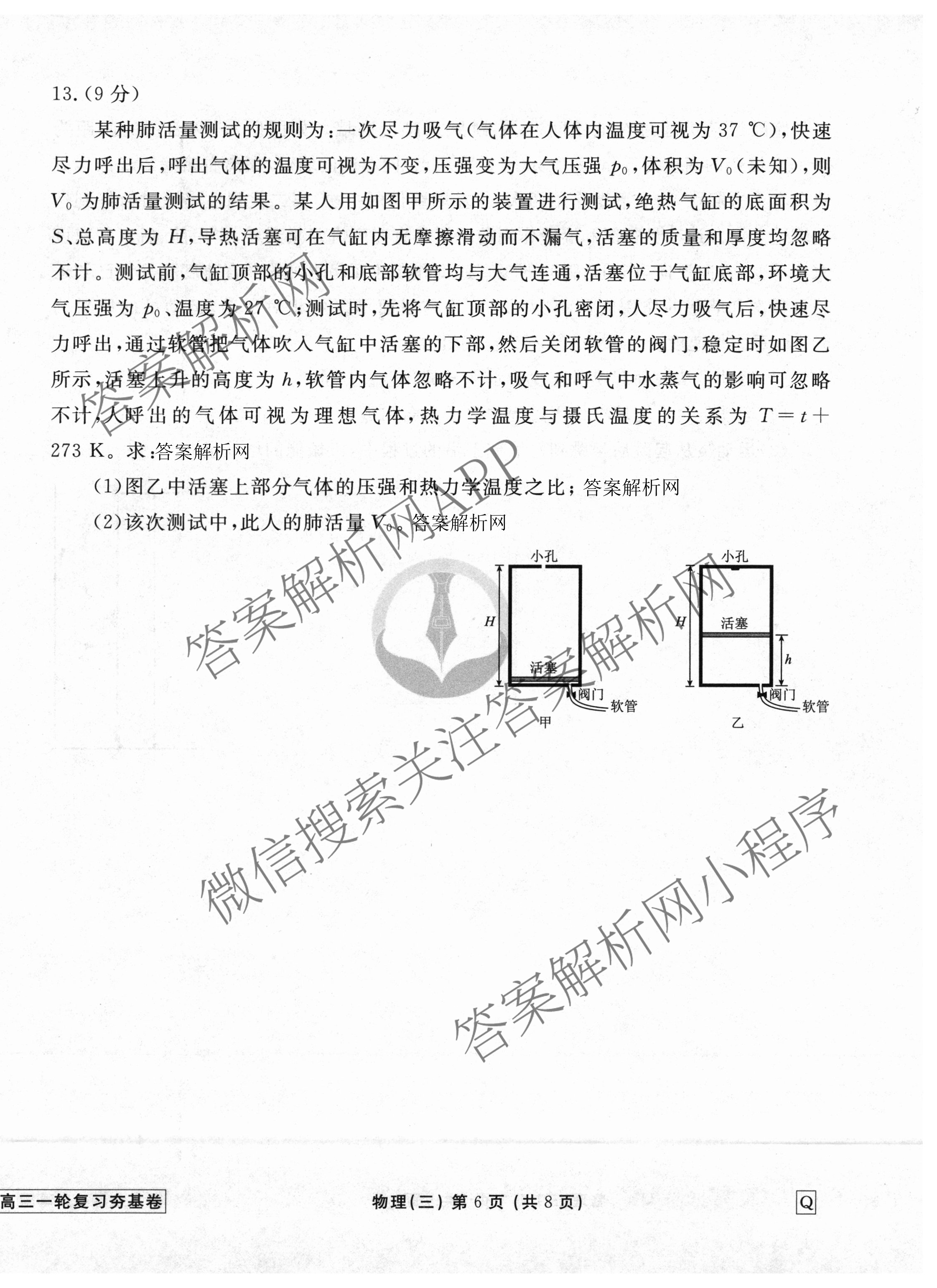 - [高三]衡水金卷先享题夯基卷 2026年普通高中学业水平选择性考试模拟试题(三)3物理(Q)答案