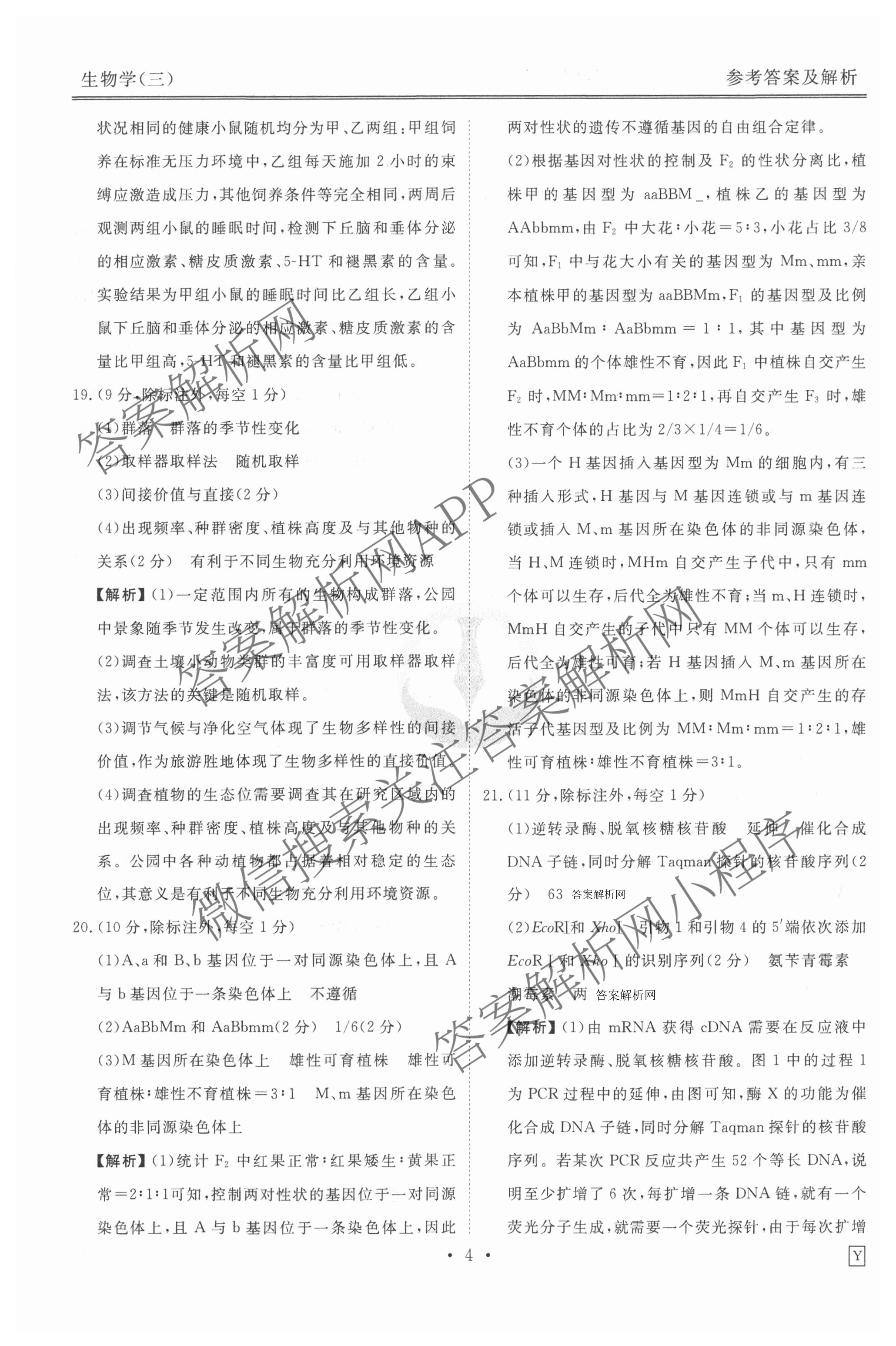 - [衡水金卷先享题]·夯基卷 2026年普通高中学业水平选择性考试模拟试题(三)3生物(Y)答案