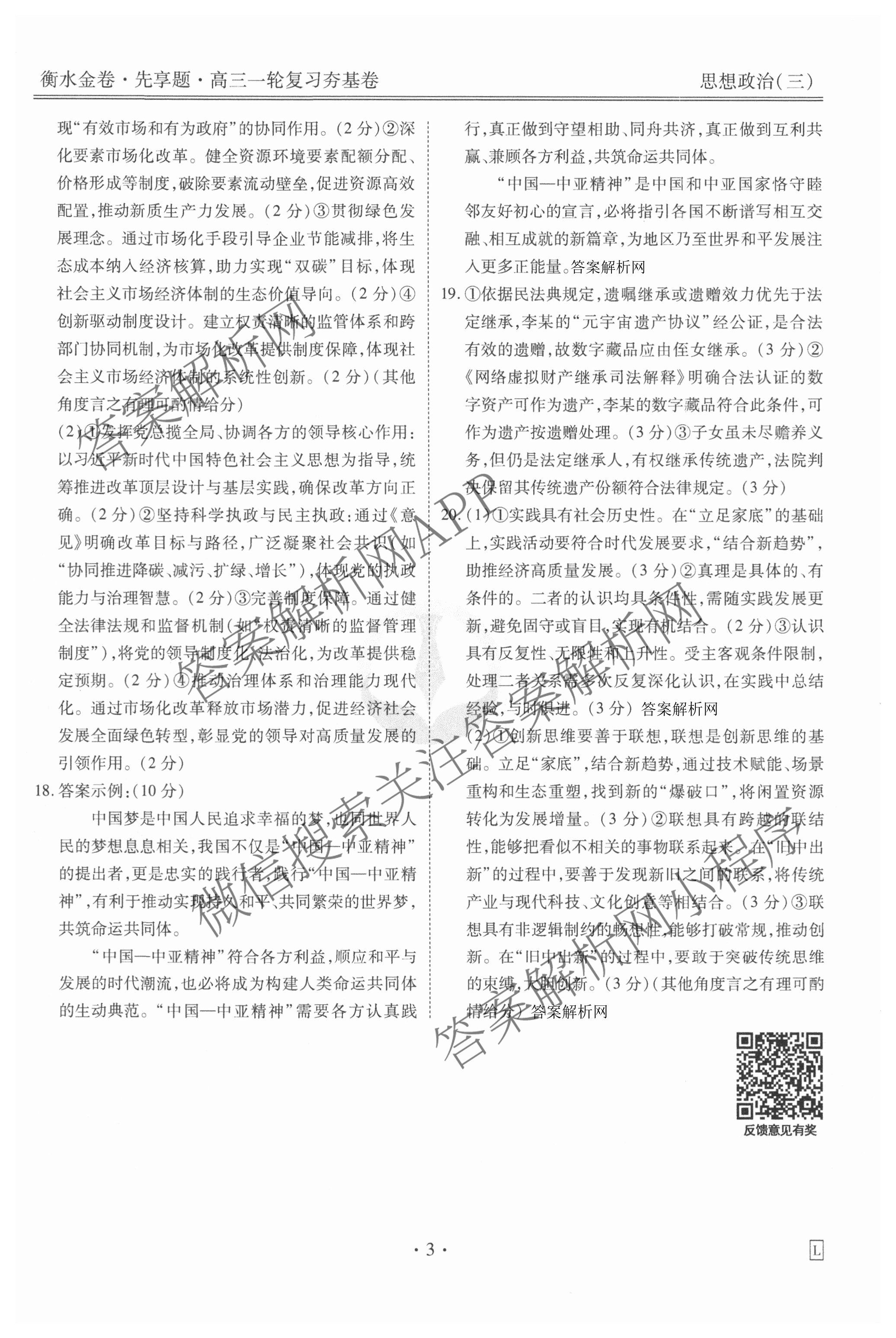 - 高三[衡水金卷先享题]夯基卷 2026年普通高中学业水平选择性考试模拟 政治(三)3答案