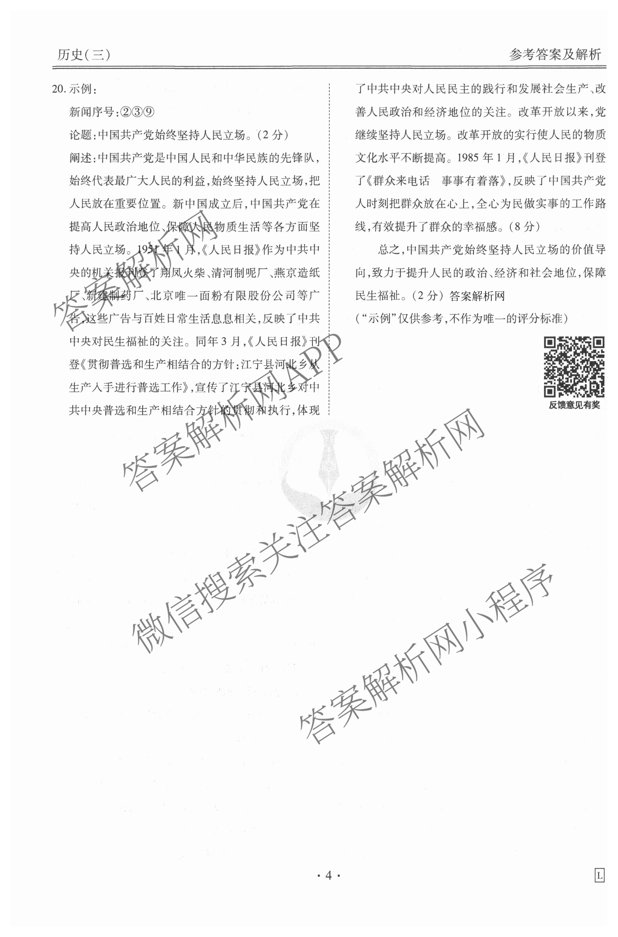 - [衡水金卷先享题]夯基卷 2026年普通高中学业水平选择性考试模拟 历史(三)3答案