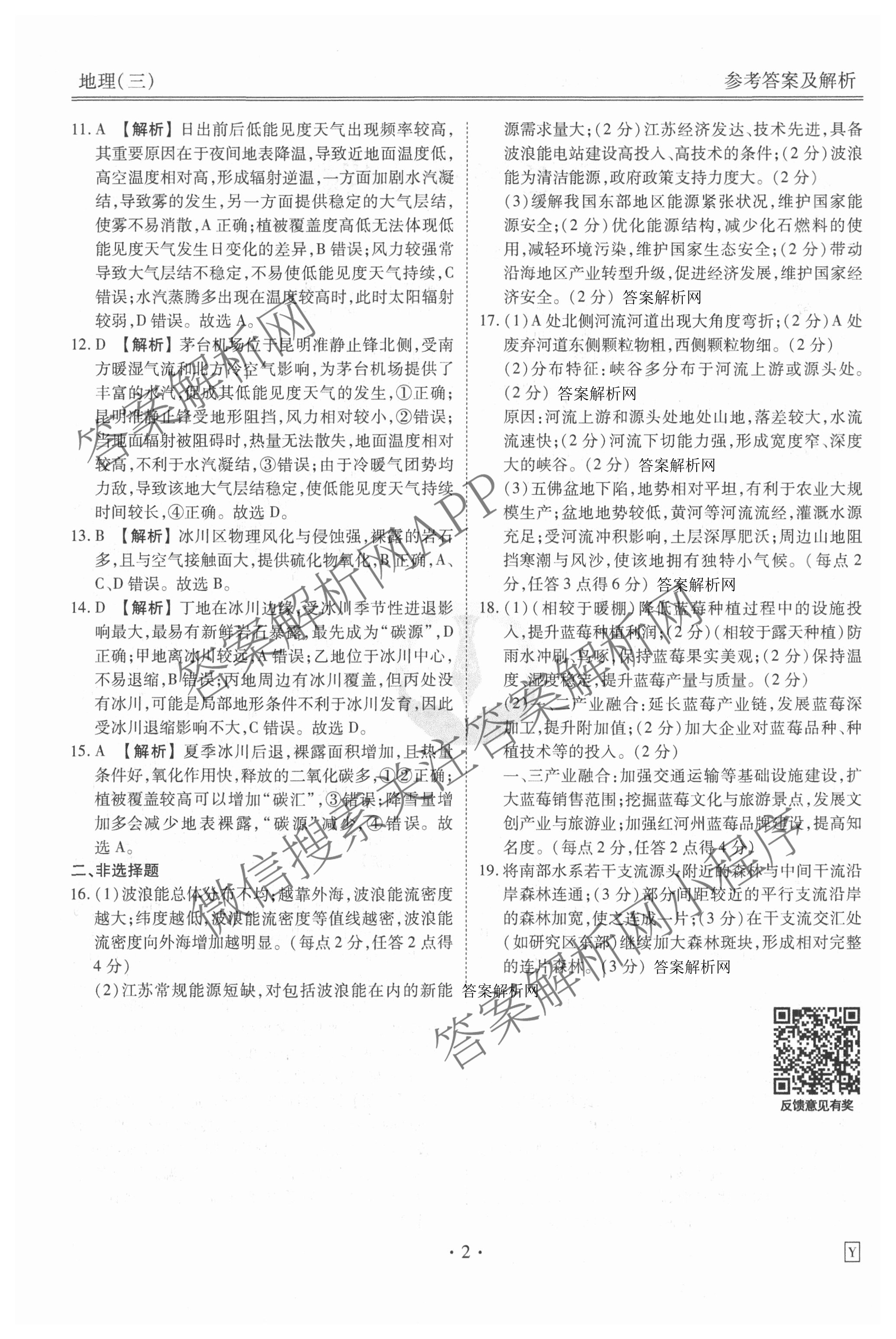 - (衡水金卷先享题)夯基卷 2026年普通高中学业水平选择性考试模拟试题(三)3地理(Y)答案