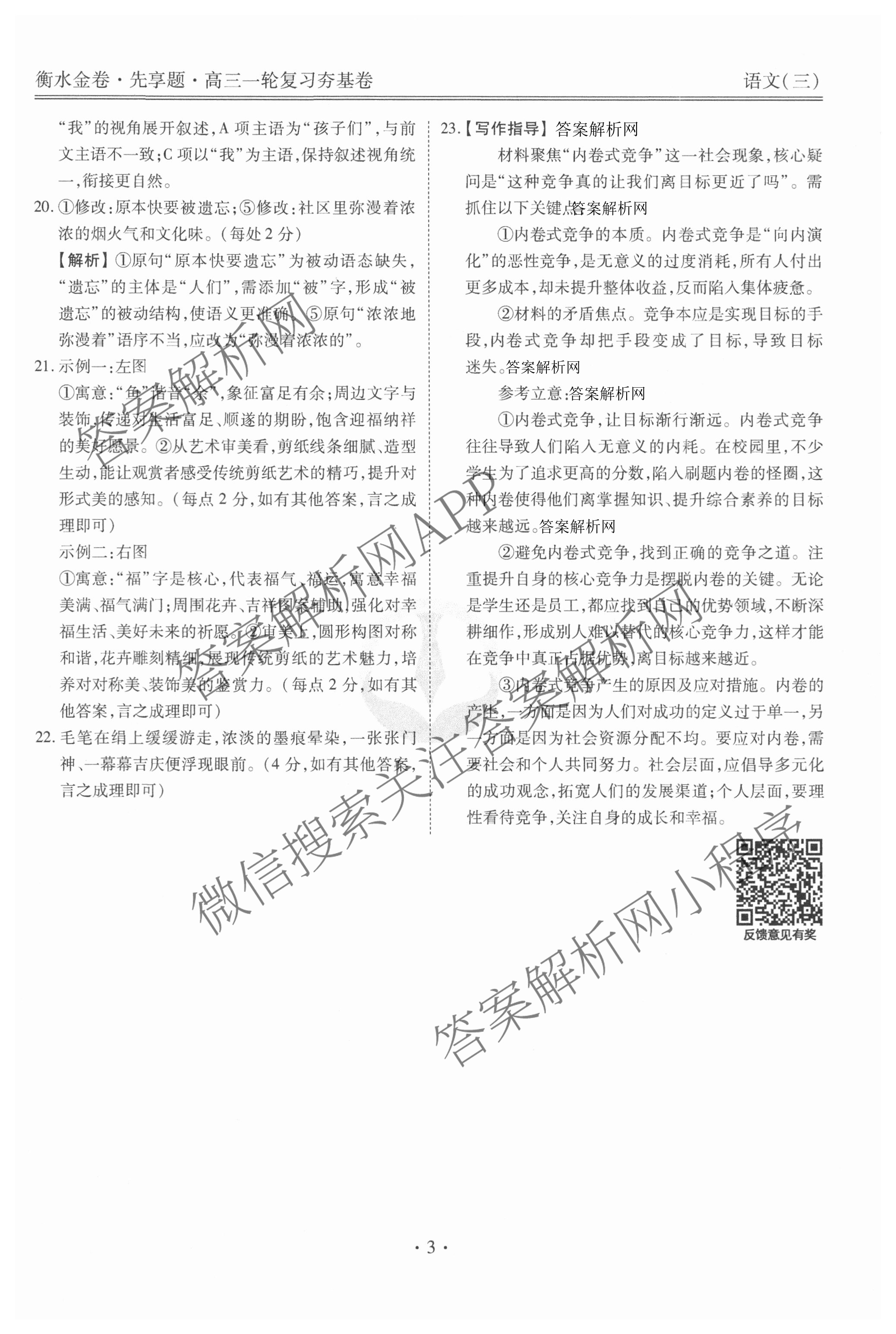 - (衡水金卷先享题)·夯基卷 2026年普通高等学校招生全国统一考试模拟 语文(三)3答案