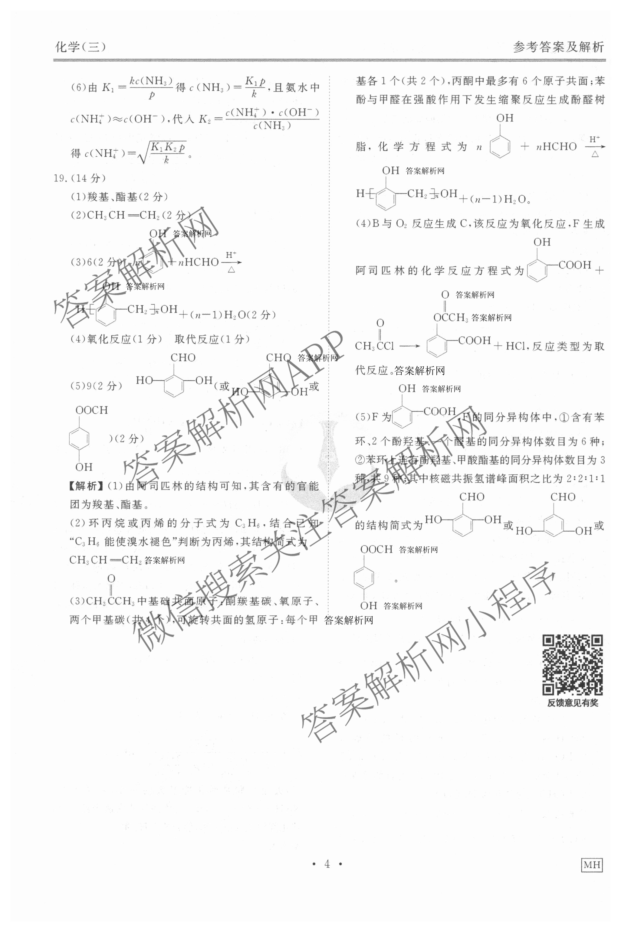- (高三)衡水金卷先享题夯基卷 2026年普通高中学业水平选择性考试模拟试题(三)3化学(MH)答案