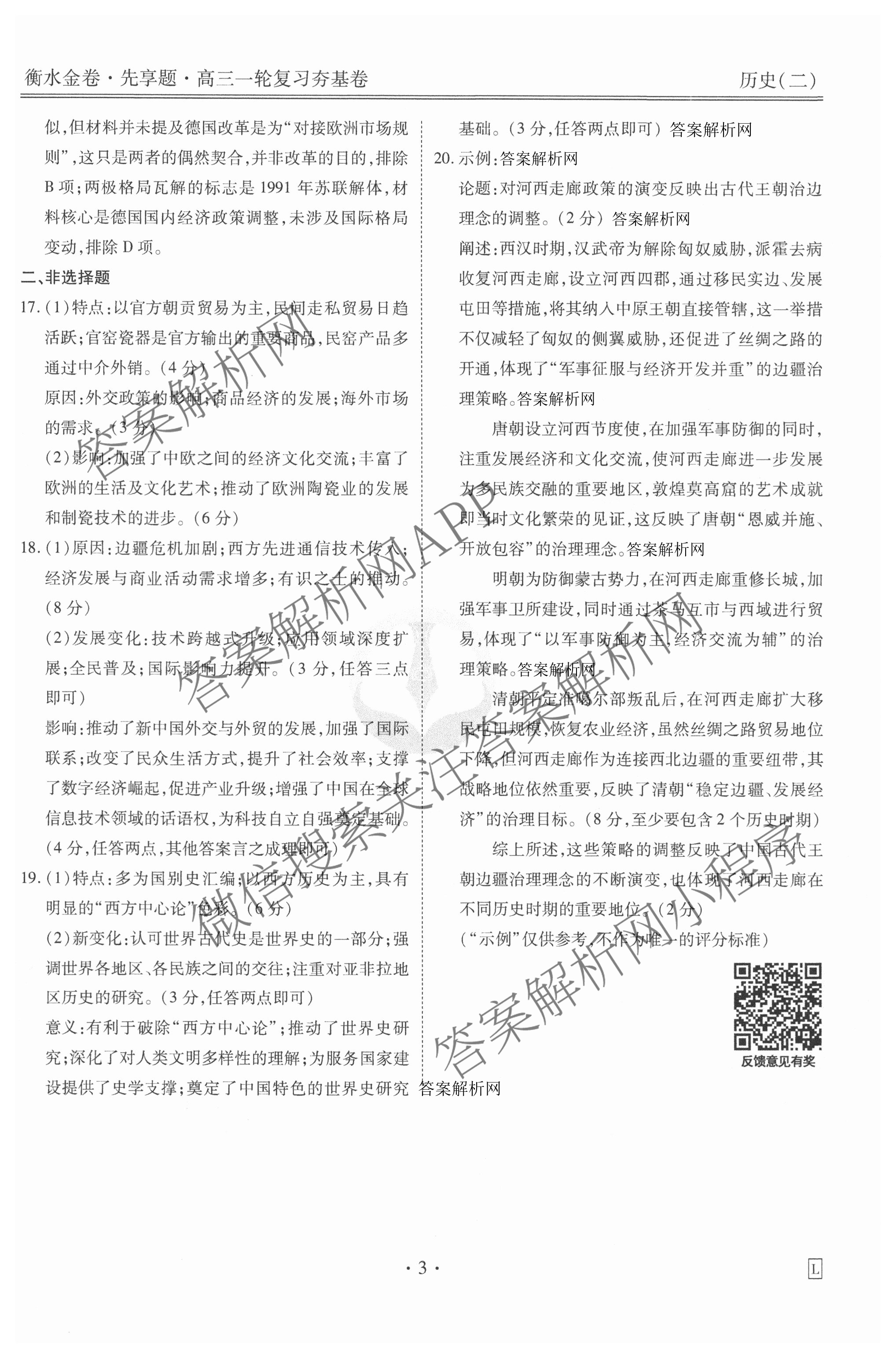 - [衡水金卷先享题]夯基卷 2026年普通高中学业水平选择性考试模拟 历史(二)2答案