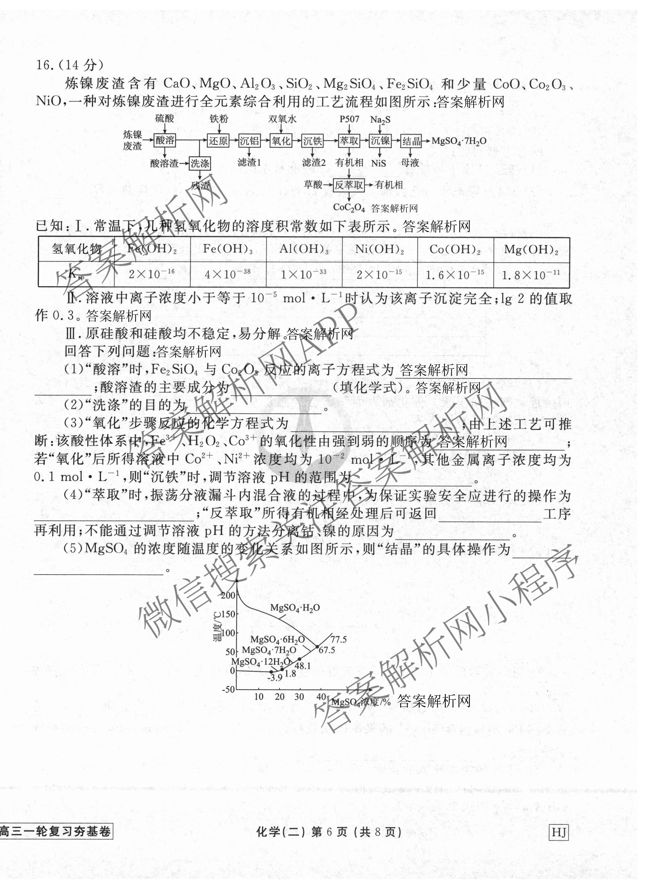 衡水金卷先享题·夯基卷 2026年普通高中学业水平选择性考试模拟试题(二)2化学(HJ)试题,目前衡水金卷先享题答案网已经汇总了衡水金卷先享题·夯基卷 2026年普通高中学业水平选择性考试模拟试题(二)2化学(HJ)试题的各科答案和试卷,获取更多衡水金卷先享题答案解析,请在关注本站。