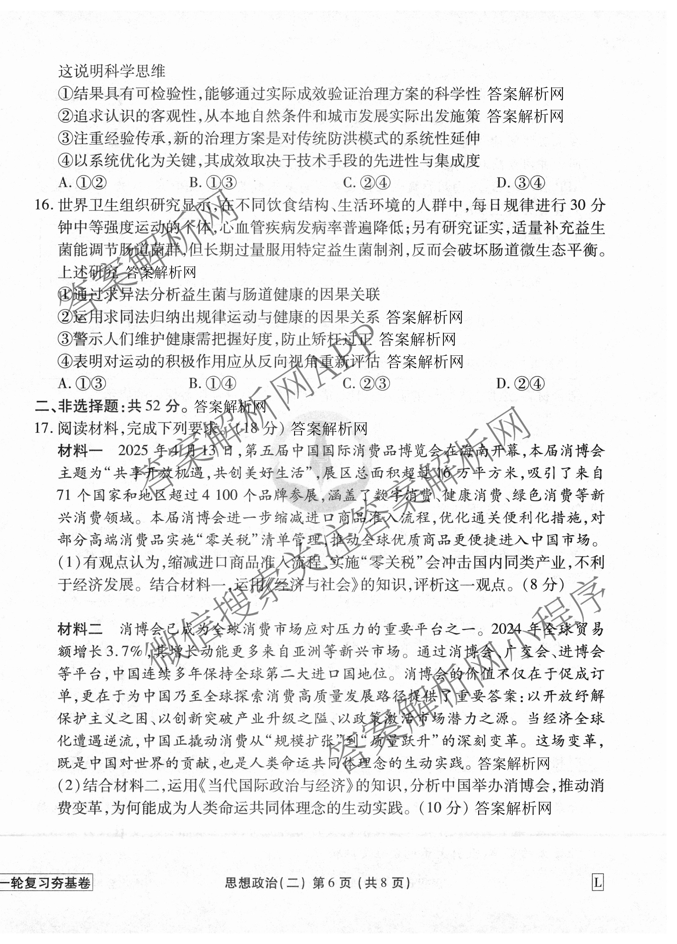 衡水金卷先享题·夯基卷 2026年普通高中学业水平选择性考试模拟试题(二)2政治(L)试题,目前衡水金卷先享题答案网已经汇总了衡水金卷先享题·夯基卷 2026年普通高中学业水平选择性考试模拟试题(二)2政治(L)试题的各科答案和试卷,获取更多衡水金卷先享题答案解析,请在关注本站。