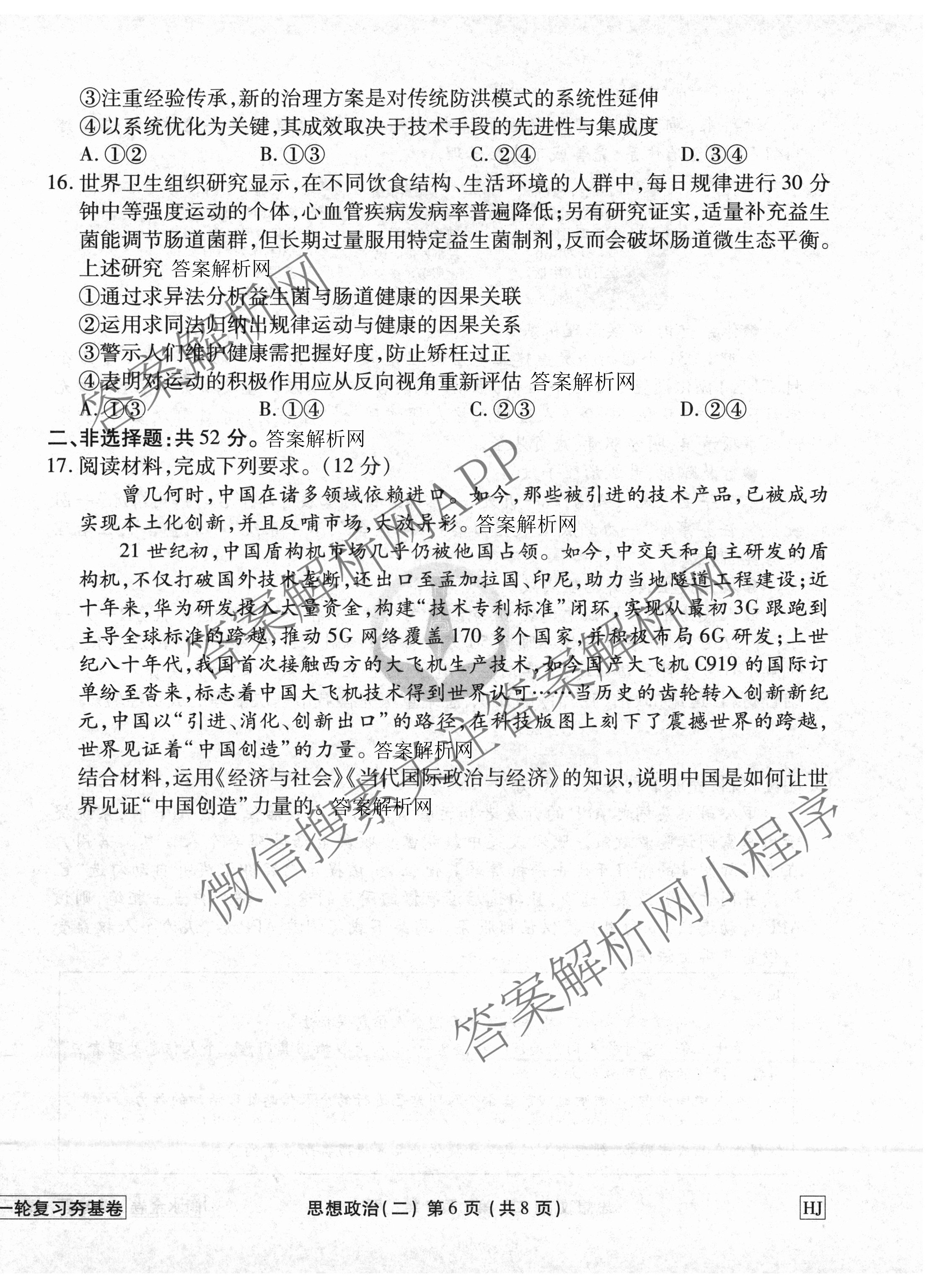 衡水金卷先享题·夯基卷 2026年普通高中学业水平选择性考试模拟试题(二)2政治(HJ)试题,目前衡水金卷先享题答案网已经汇总了衡水金卷先享题·夯基卷 2026年普通高中学业水平选择性考试模拟试题(二)2政治(HJ)试题的各科答案和试卷,获取更多衡水金卷先享题答案解析,请在关注本站。
