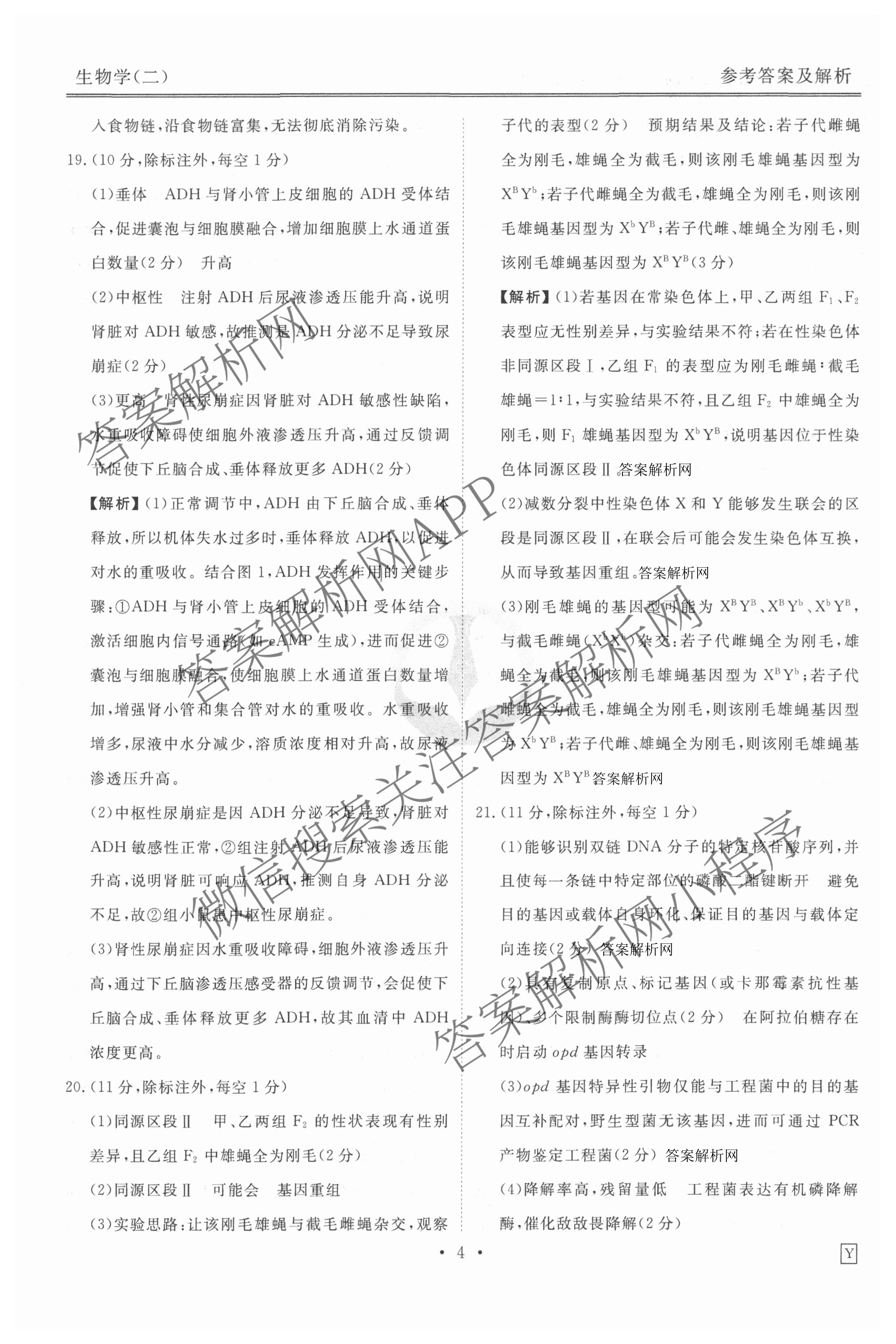 - [高三]衡水金卷先享题·夯基卷 2026年普通高中学业水平选择性考试模拟试题(二)2生物(Y)答案