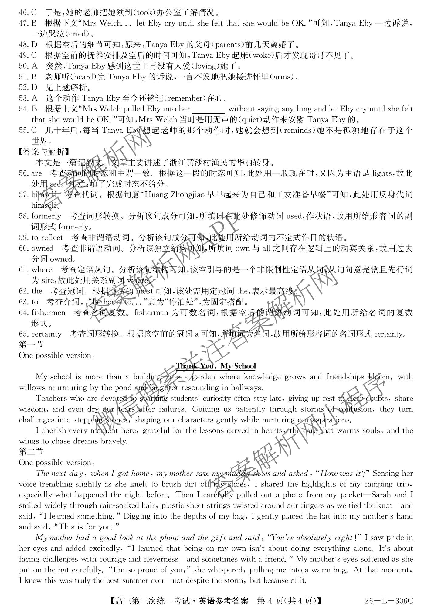 - [高三]黑龙江省齐市普高联谊校第三次统一考试(26-L-306C)英语答案