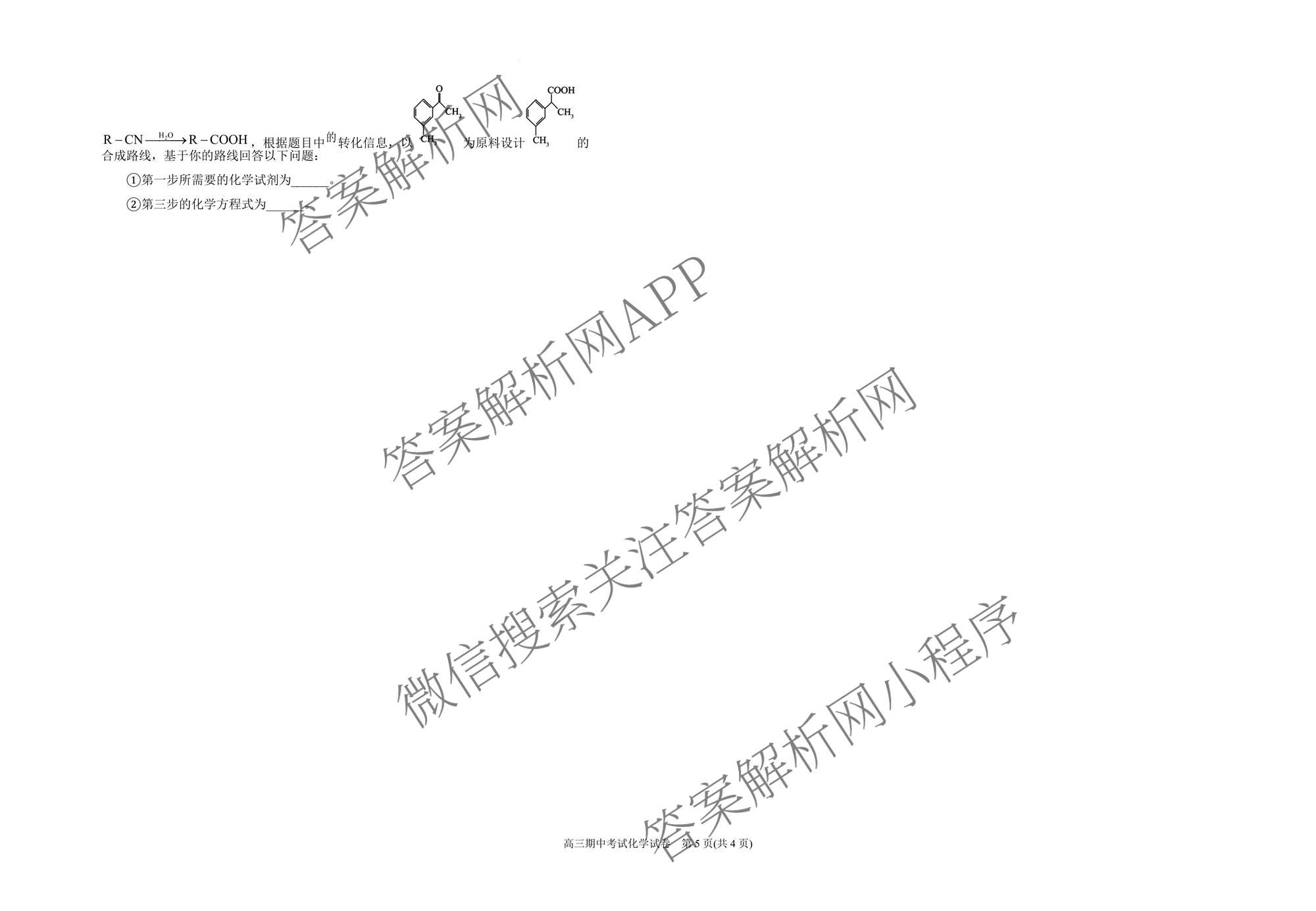 银川一中2026届高三年级期中考试化学试题,目前衡水金卷先享题答案网已经汇总了银川一中2026届高三年级期中考试化学试题的各科答案和试卷,获取更多地方模拟答案解析,请在关注本站。