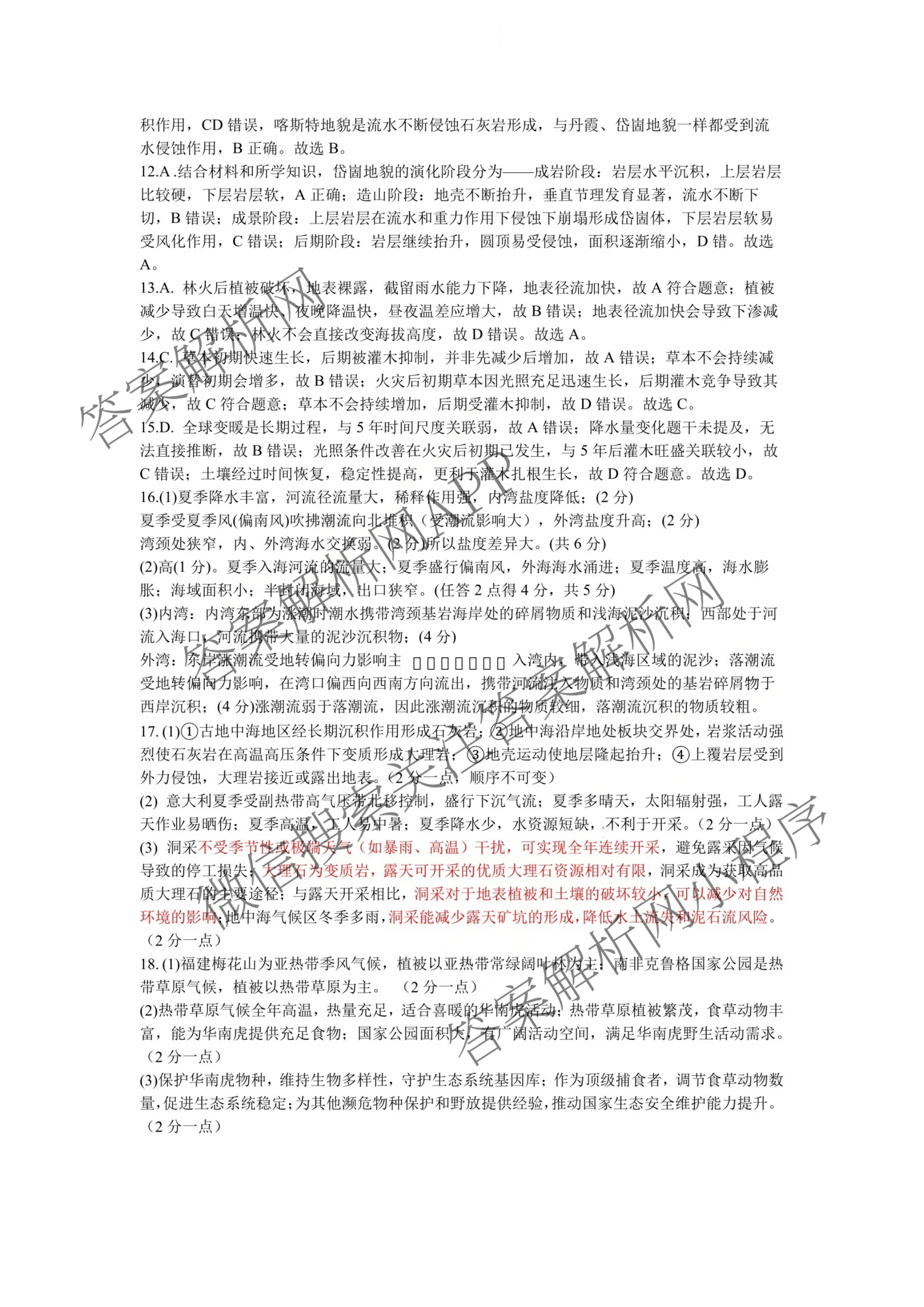 - 2026届重庆市高(高三)上学期十二月联合诊断考试地理答案