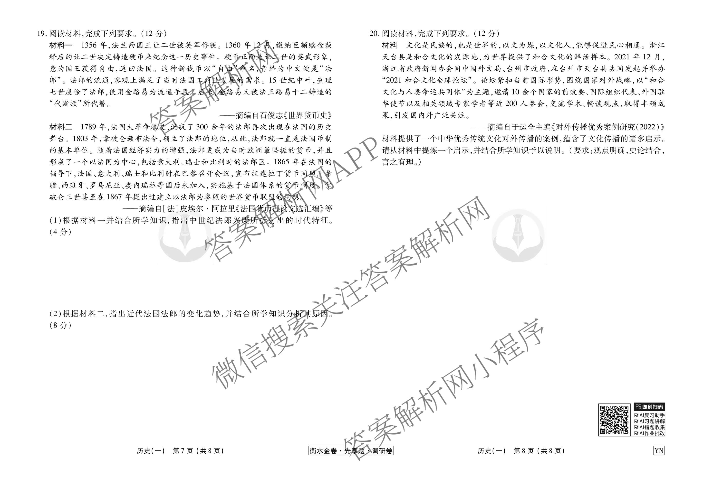 衡水金卷先享题·调研卷·2026年普通高中学业水平选择性考试模拟试题(一)1历史(YN)试题,目前衡水金卷先享题答案网已经汇总了衡水金卷先享题·调研卷·2026年普通高中学业水平选择性考试模拟试题(一)1历史(YN)试题的各科答案和试卷,获取更多衡水金卷先享题答案解析,请在关注本站。