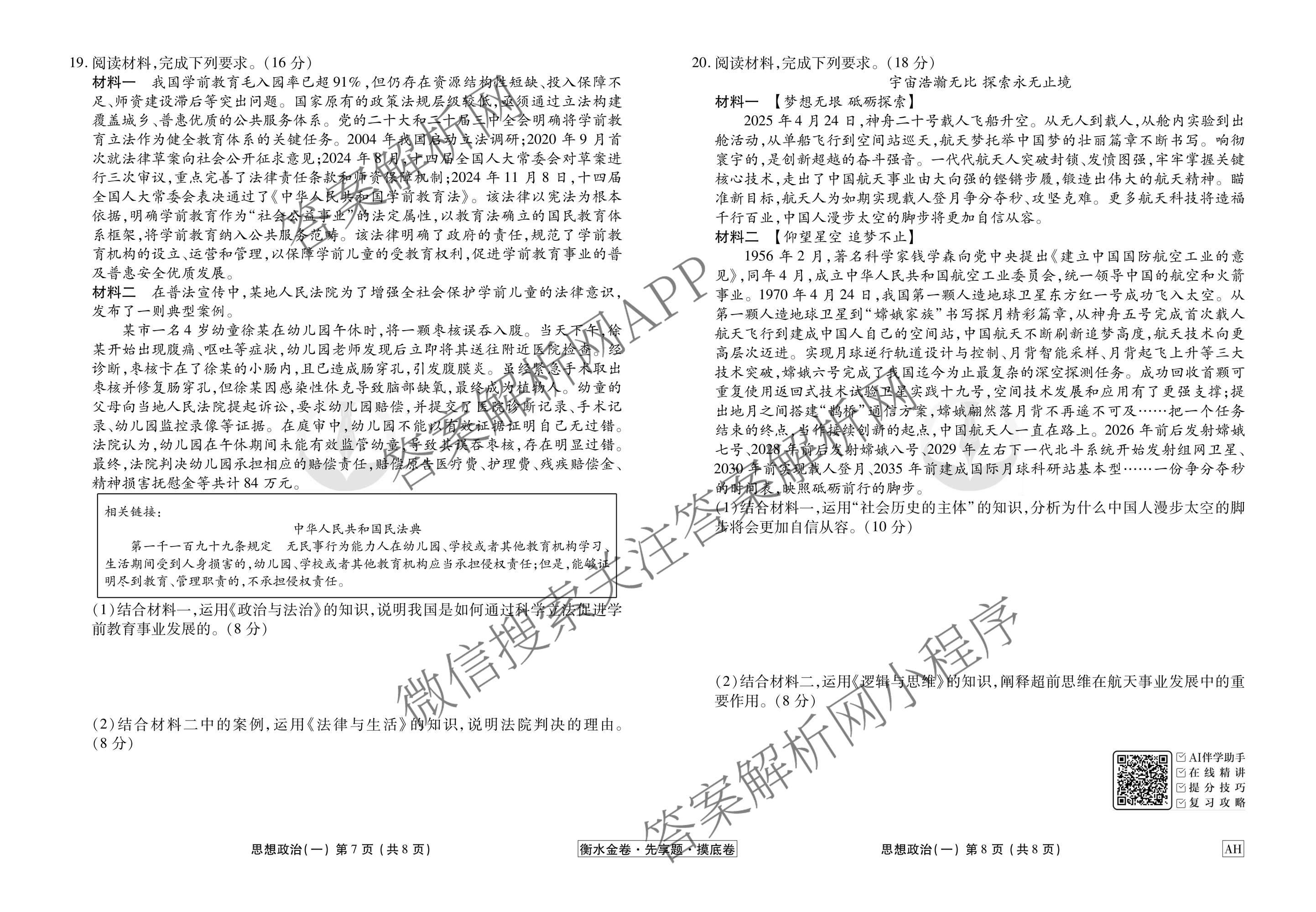 衡水金卷先享题·摸底卷2025-2026学年度高三一轮复习摸底测试卷(一)1政治(AH)试题,目前衡水金卷先享题答案网已经汇总了衡水金卷先享题·摸底卷2025-2026学年度高三一轮复习摸底测试卷(一)1政治(AH)试题的各科答案和试卷,获取更多衡水金卷先享题答案解析,请在关注本站。