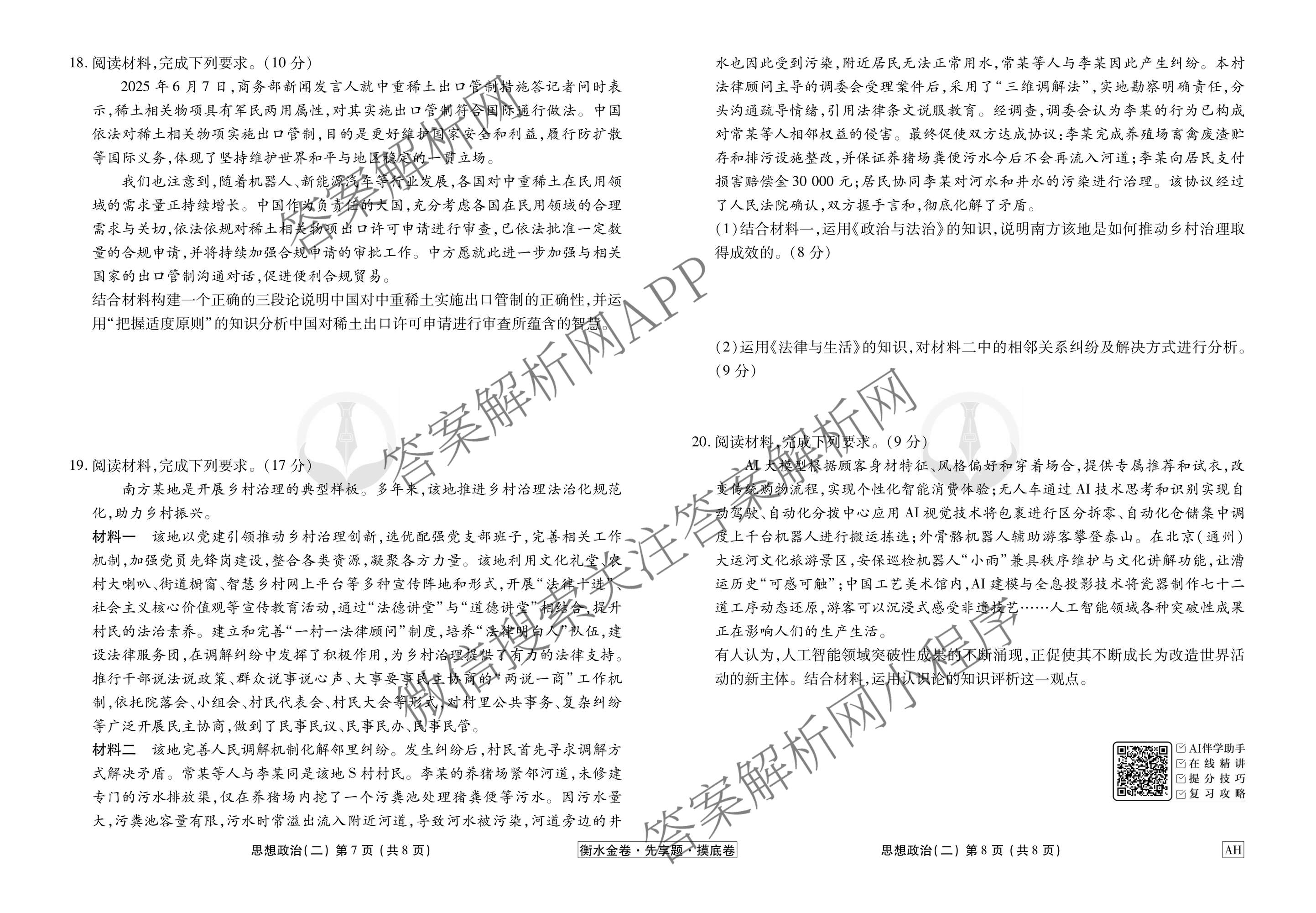 衡水金卷先享题·摸底卷2025-2026学年度高三一轮复习摸底测试卷(二)2政治(AH)试题,目前衡水金卷先享题答案网已经汇总了衡水金卷先享题·摸底卷2025-2026学年度高三一轮复习摸底测试卷(二)2政治(AH)试题的各科答案和试卷,获取更多衡水金卷先享题答案解析,请在关注本站。
