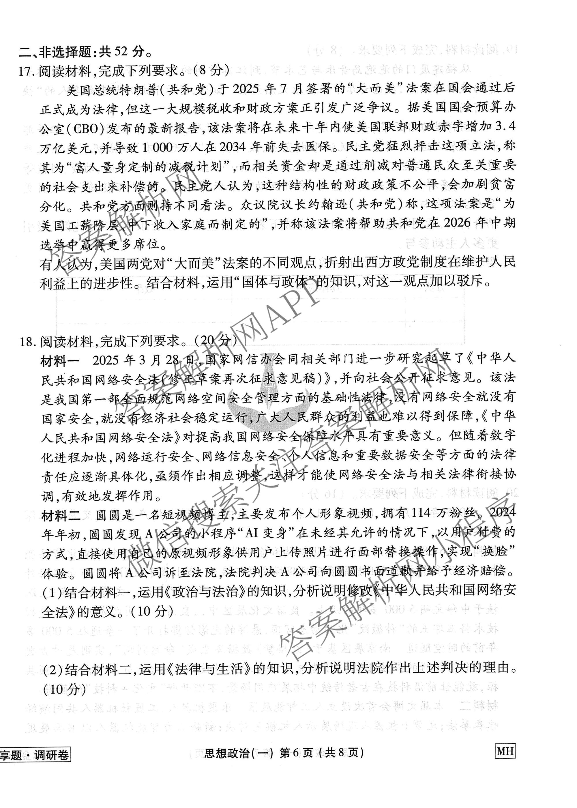衡水金卷先享题·调研卷·2026年普通高中学业水平选择性考试模拟(一)1政治(MH)试题,目前衡水金卷先享题答案网已经汇总了衡水金卷先享题·调研卷·2026年普通高中学业水平选择性考试模拟(一)1政治(MH)试题的各科答案和试卷,获取更多衡水金卷先享题答案解析,请在关注本站。