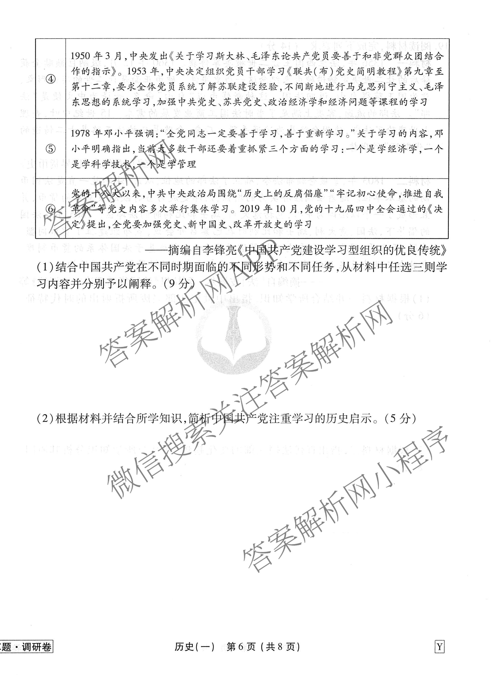 - 衡水金卷先享题调研卷2026年普通高中学业水平选择性考试模拟(一)1历史(Y)答案