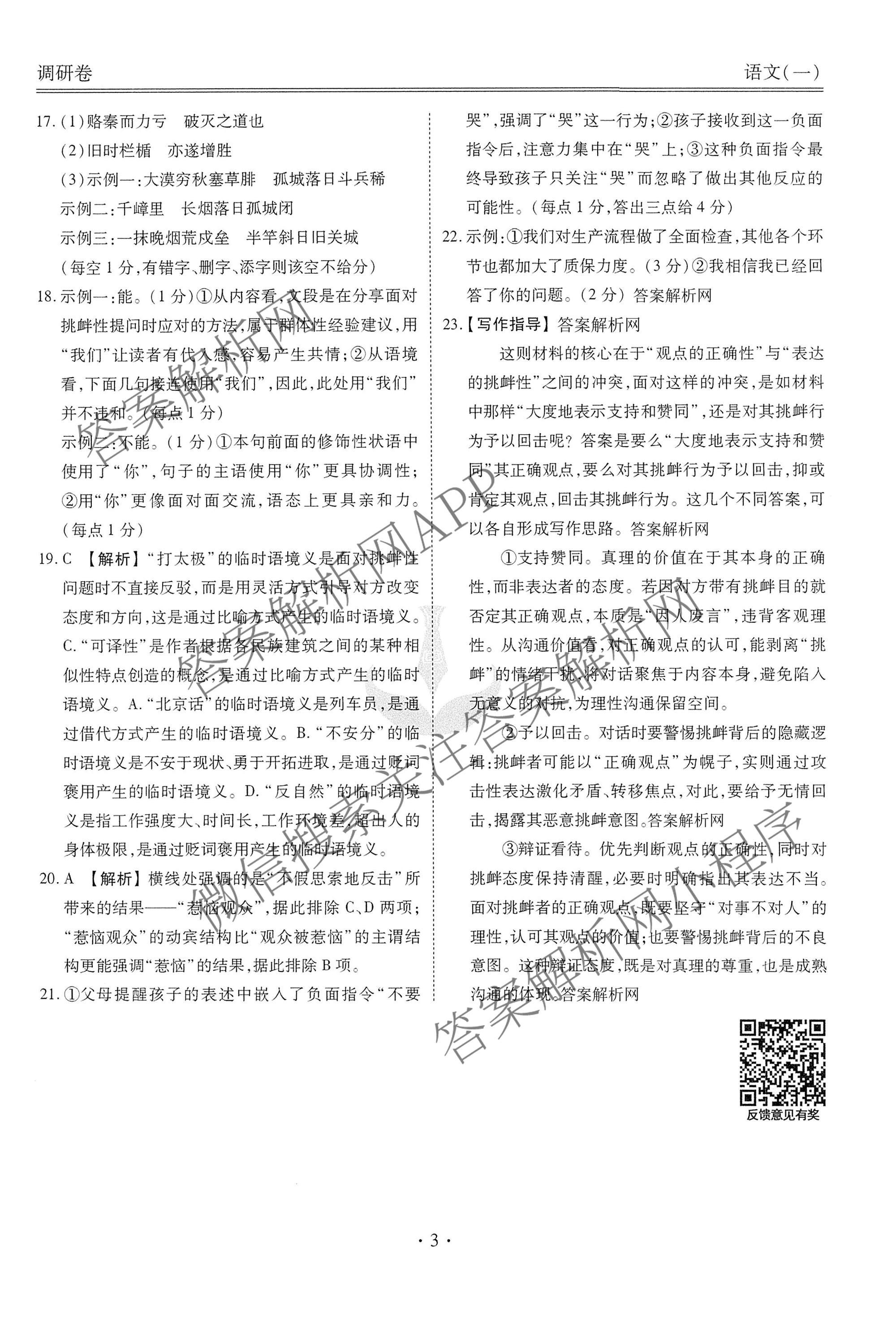 - [衡水金卷先享题]·调研卷·2026年普通高等学校招生全国统一考试模拟试题(一)1语文答案