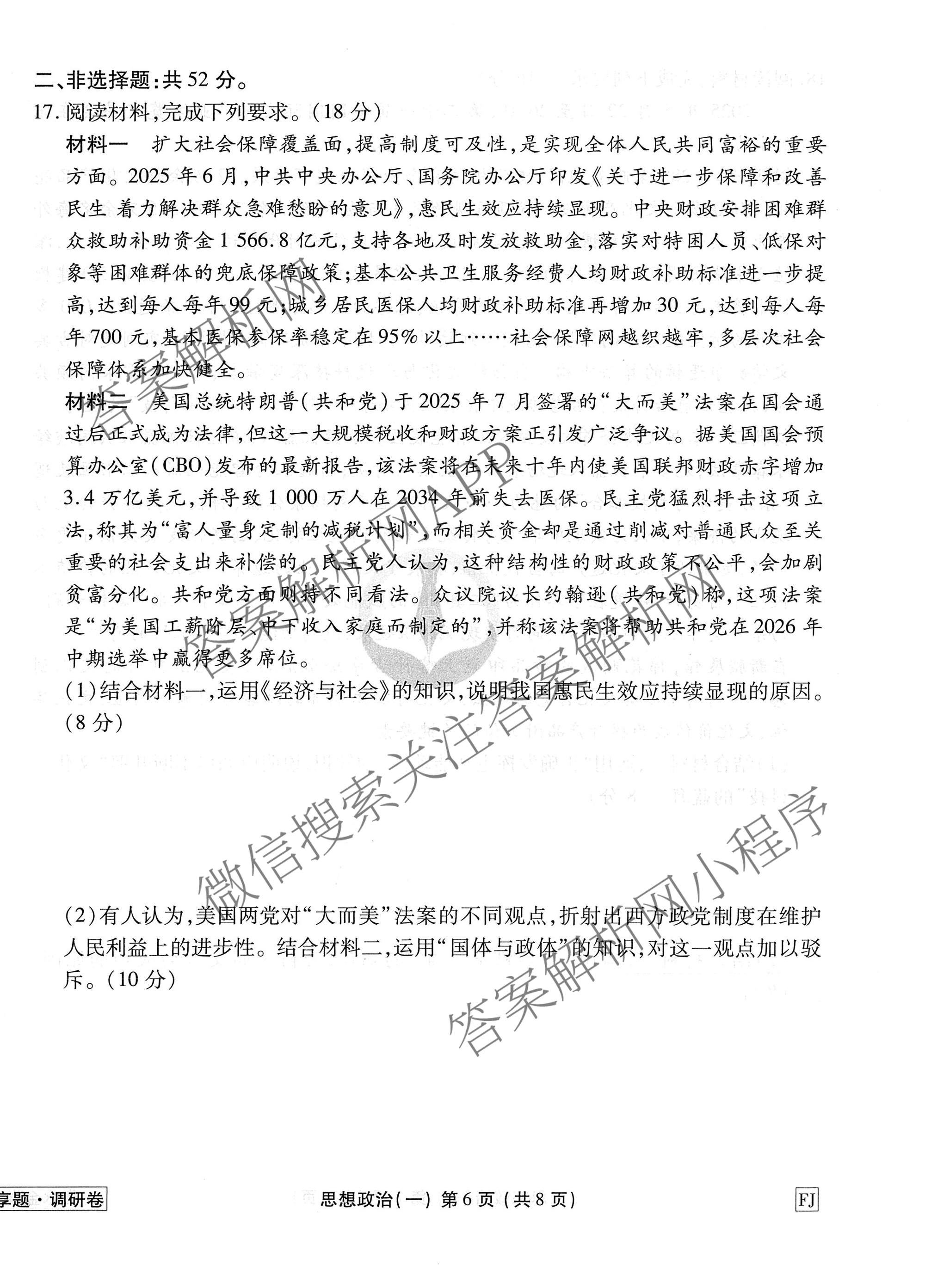- [高三](衡水金卷先享题)·调研卷·2026年普通高中学业水平选择性考试模拟试题(一)1政治(GX)试题