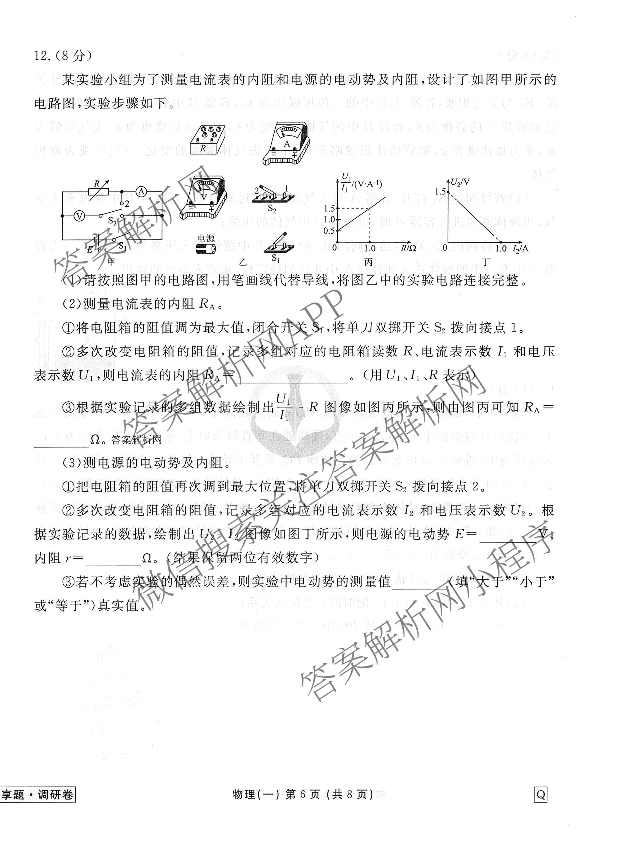 衡水金卷先享题·调研卷·2026年普通高中学业水平选择性考试模拟(一)1物理(Q)试题,目前衡水金卷先享题答案网已经汇总了衡水金卷先享题·调研卷·2026年普通高中学业水平选择性考试模拟(一)1物理(Q)试题的各科答案和试卷,获取更多衡水金卷先享题答案解析,请在关注本站。