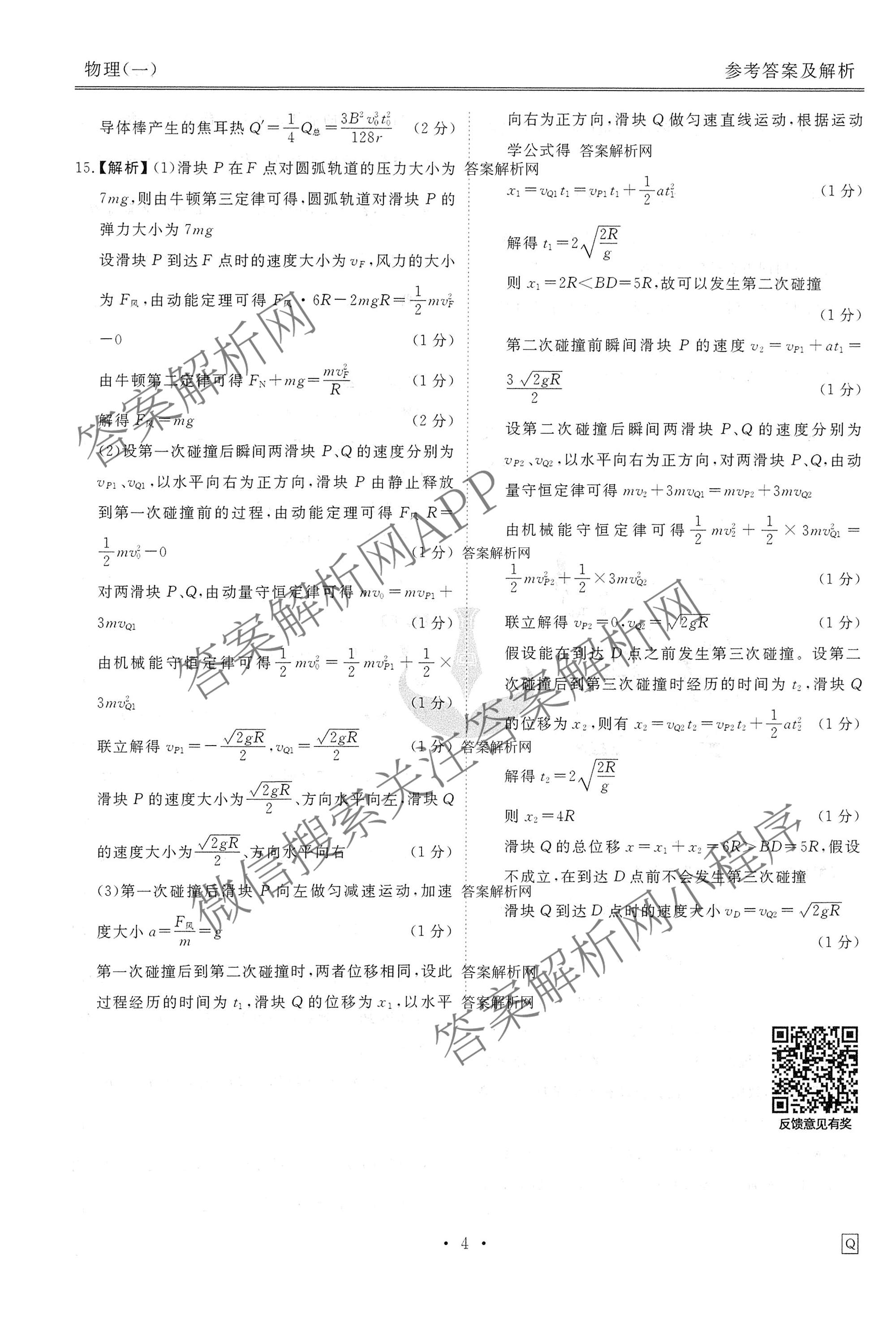 高三(衡水金卷先享题)·调研卷·2026年普通高中学业水平选择性考试模拟(一)1物理(Q)答案