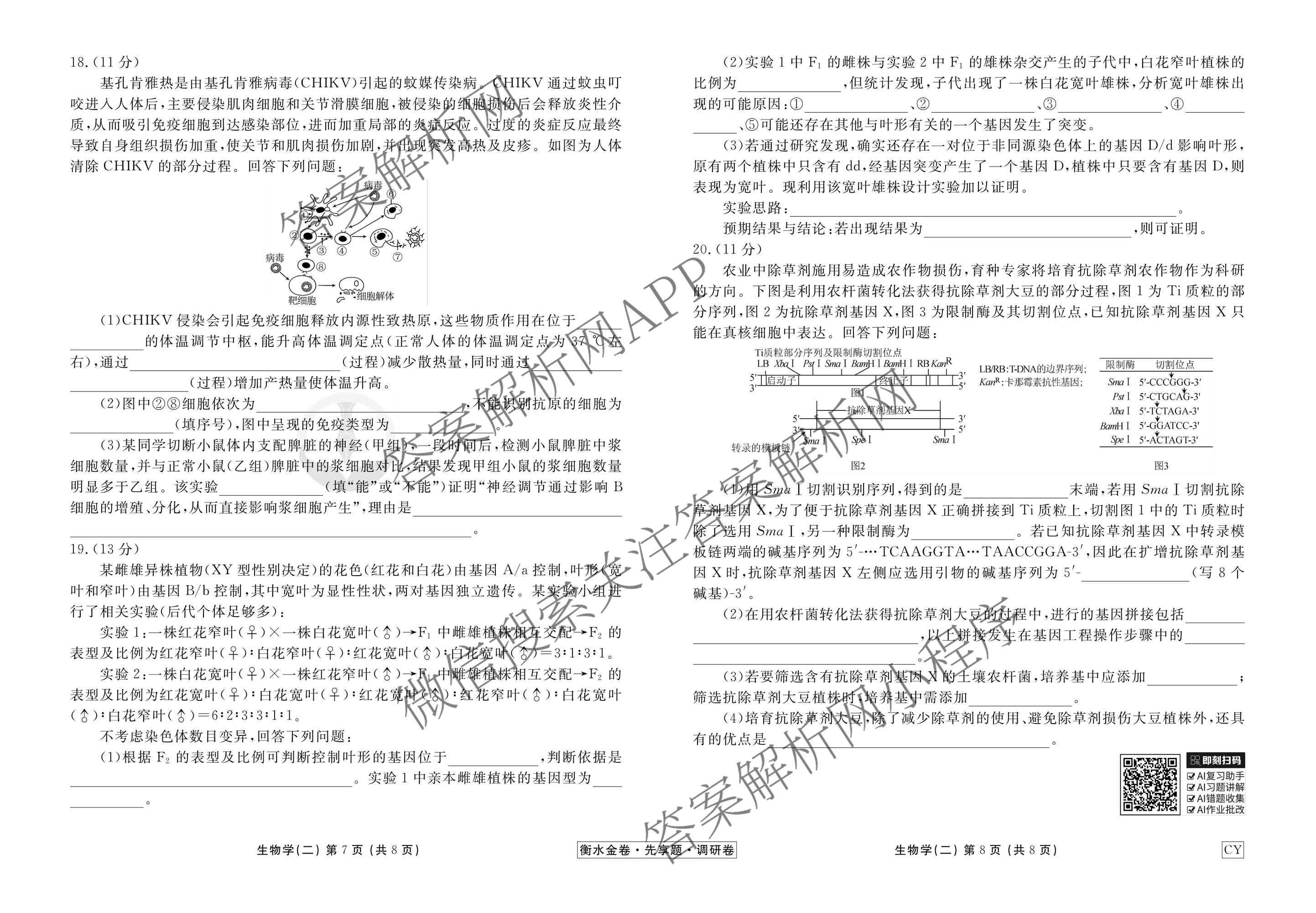 衡水金卷先享题·调研卷·2026年普通高中学业水平选择性考试模拟试题(二)2生物(CY)试题,目前衡水金卷先享题答案网已经汇总了衡水金卷先享题·调研卷·2026年普通高中学业水平选择性考试模拟试题(二)2生物(CY)试题的各科答案和试卷,获取更多衡水金卷先享题答案解析,请在关注本站。