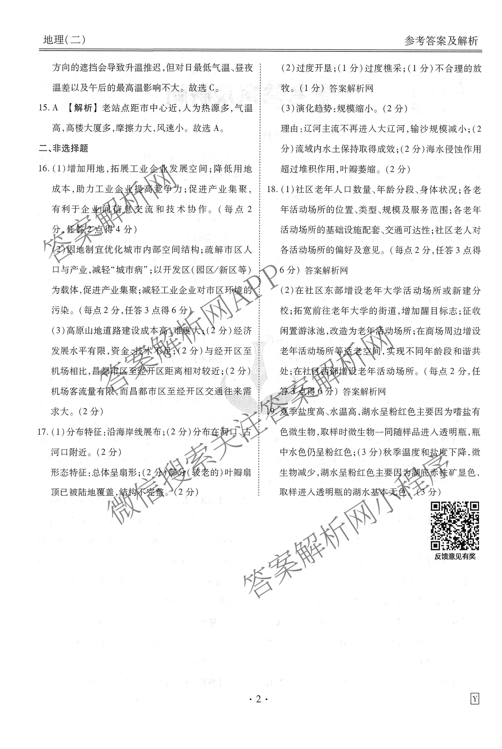 - (衡水金卷先享题)调研卷2026年普通高中学业水平选择性考试模拟试题(二)2地理(S)答案