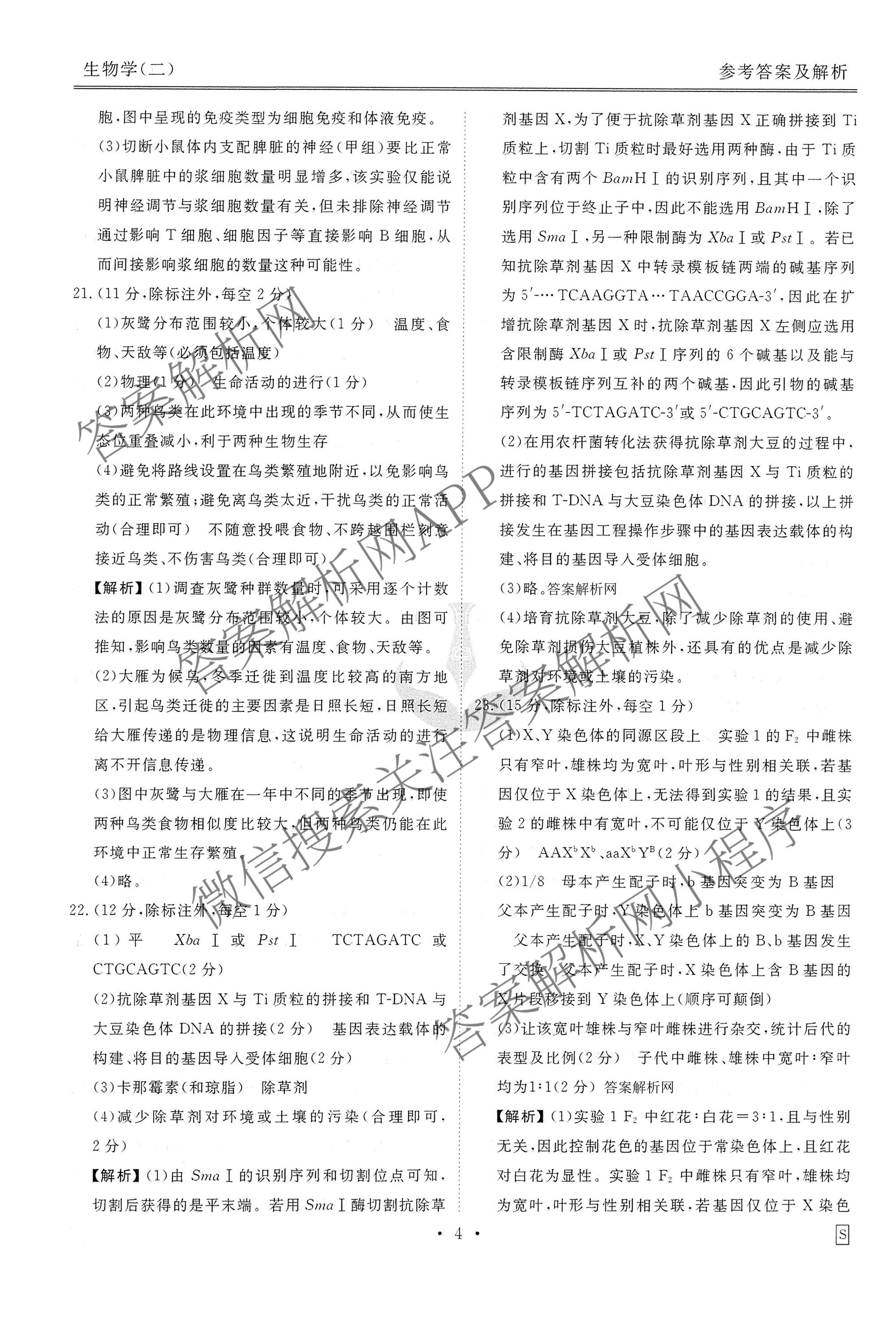 [高三](衡水金卷先享题)调研卷2026年普通高中学业水平选择性考试模拟(二)2生物(S)答案
