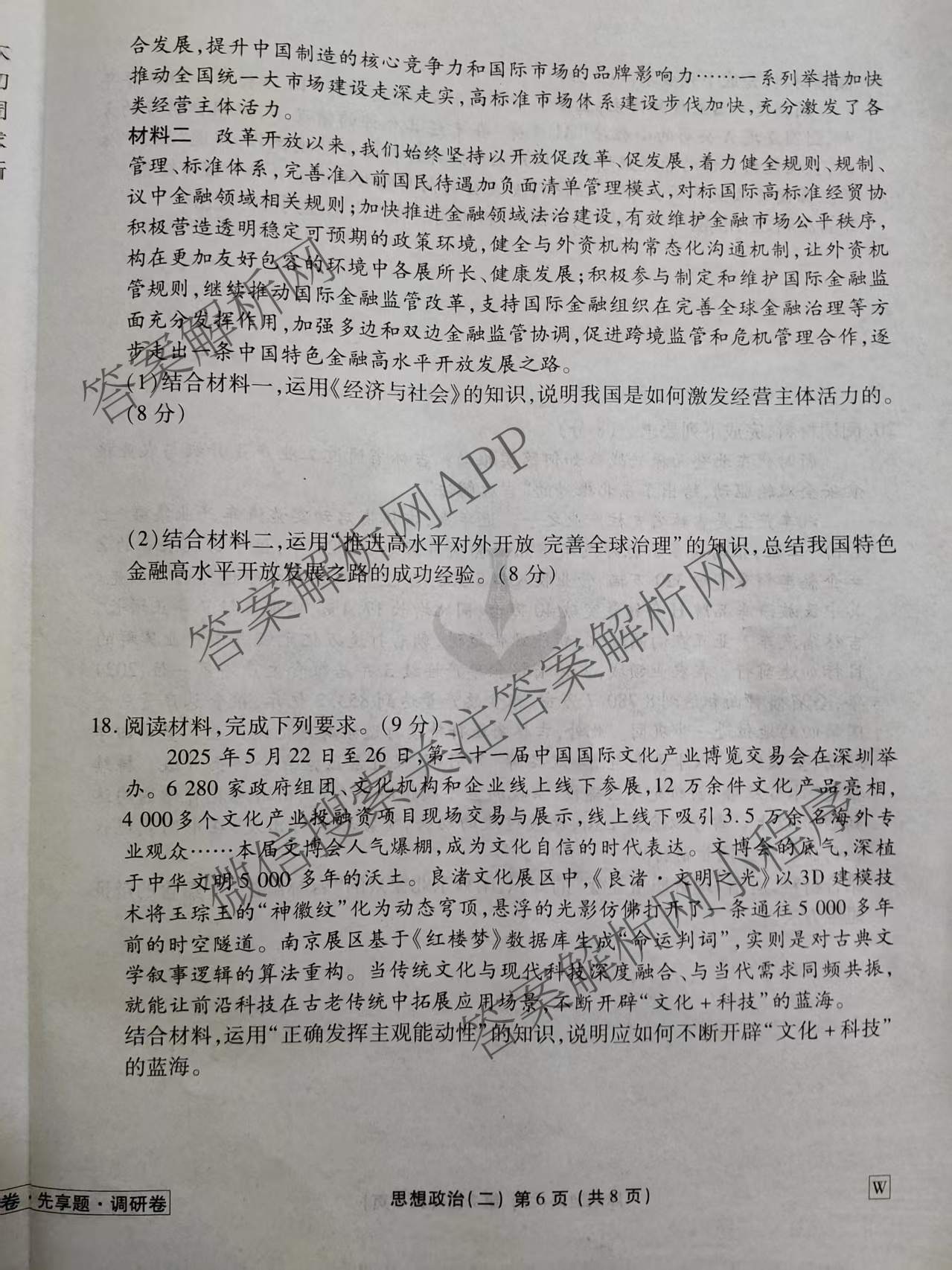 [高三]衡水金卷先享题调研卷2026年普通高中学业水平选择性考试模拟试题(二)2政治(W)试题